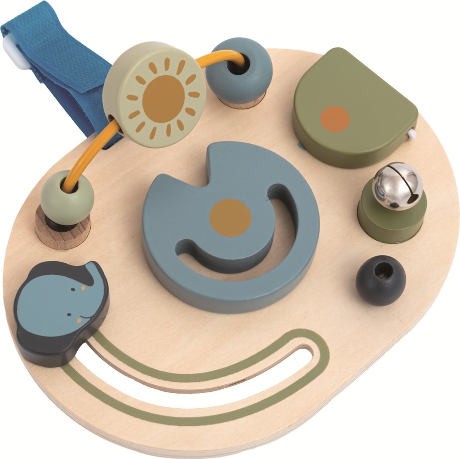 Jednoduchá hrací deska s motivem slona přináší spoustu zábavy, díky které bude moci Vaše dítě rozvíjet zručnost, zvídavost, jemnou motoriku a koordinaci ruka-oko. Různé aktivity jako je labyrint, posouvání a překlápění dávají dítěti možnost připravit se na úkony každodenního života. Jemné barvy, zvuky a roztomilé obrázky stimulují smyslové vnímaní dětí.