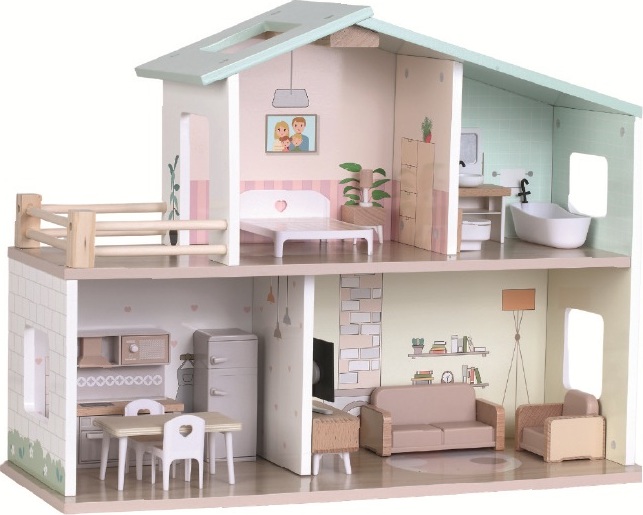 Vítejte v domečku, ve kterém vládne pohoda! Domeček ve venkovském stylu je plně vybaven nábytkem i doplňky. Najdete v něm kuchyni, útulný obývací pokoj, stylovou koupelnu s vanou, ložnici a terasu pro chvíle pohody. Děti při hře rozvíjejí fantazii, sociální dovednosti i smysl pro detail. A hlavně se výborně baví! Hravý design, jemné barvy spolu s kvalitním provedením dělají z této hračky krásný doplněk každého pokojíčku nebo herny. Domeček je dodáván v rozloženém stavu a vyžaduje montáž. Návod k sestavení je součástí balení.