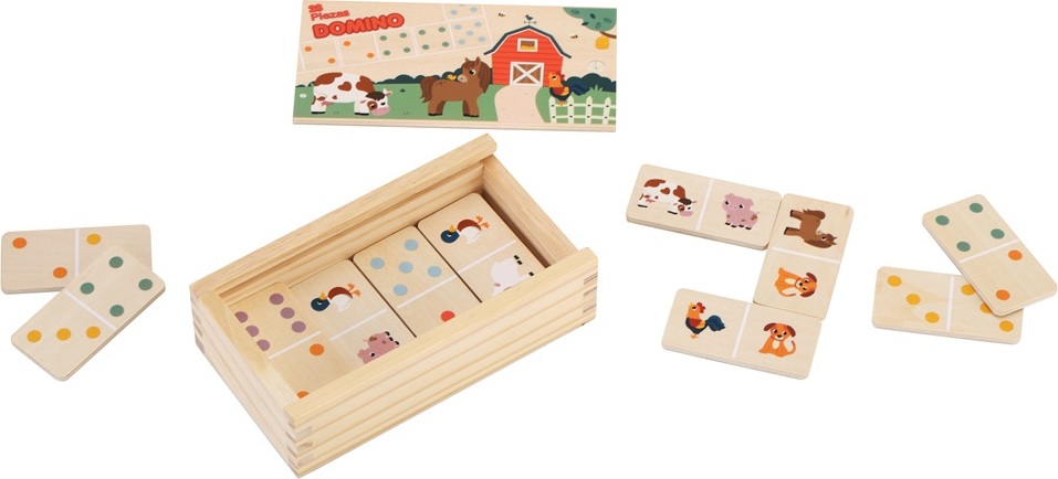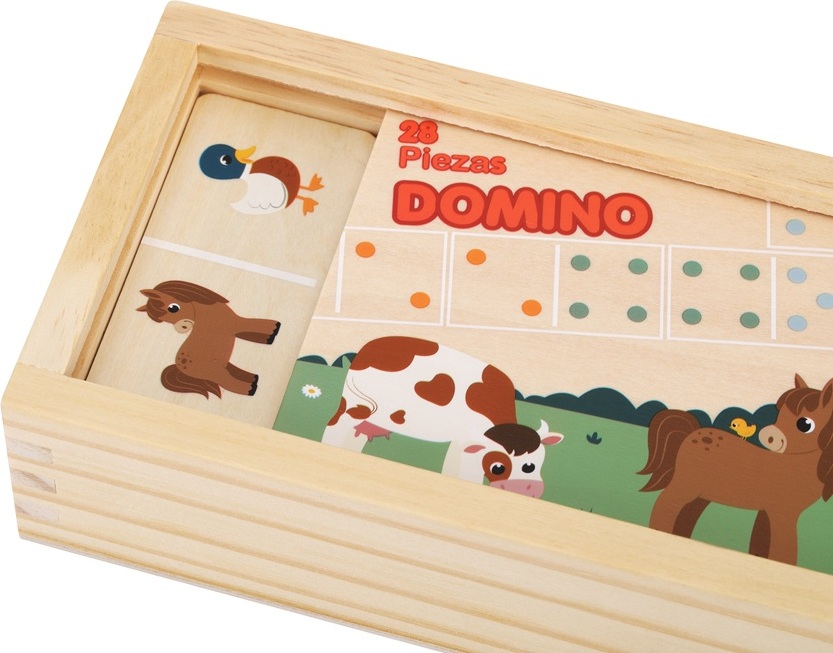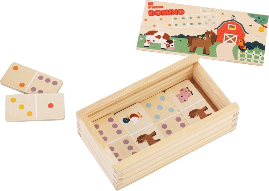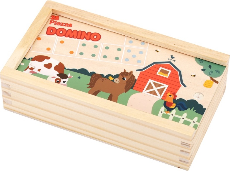 Jedna hra, dva způsoby zábavy pro malé i větší děti! S oboustranným dominem se děti nejen skvěle zabaví, ale také přirozeně rozvíjejí své schopnosti. Menší děti si užijí skládání pomocí veselých obrázků zvířátek z farmy, zatímco větší si zahrají klasické domino s puntíky a nenásilně si procvičí počítání i logické uvažování. Domino podporuje logické myšlení i jemnou motoriku a nabízí skvělou možnost ke společné hře dětí s rodiči, prarodiči nebo sourozenci. Příjemné pastelové a zemité odstíny barev spolu s kvalitním přírodním dřevem dělají z této hračky krásný doplněk každého pokojíčku. Uloženo v praktickém dřevěném boxu s víčkem.