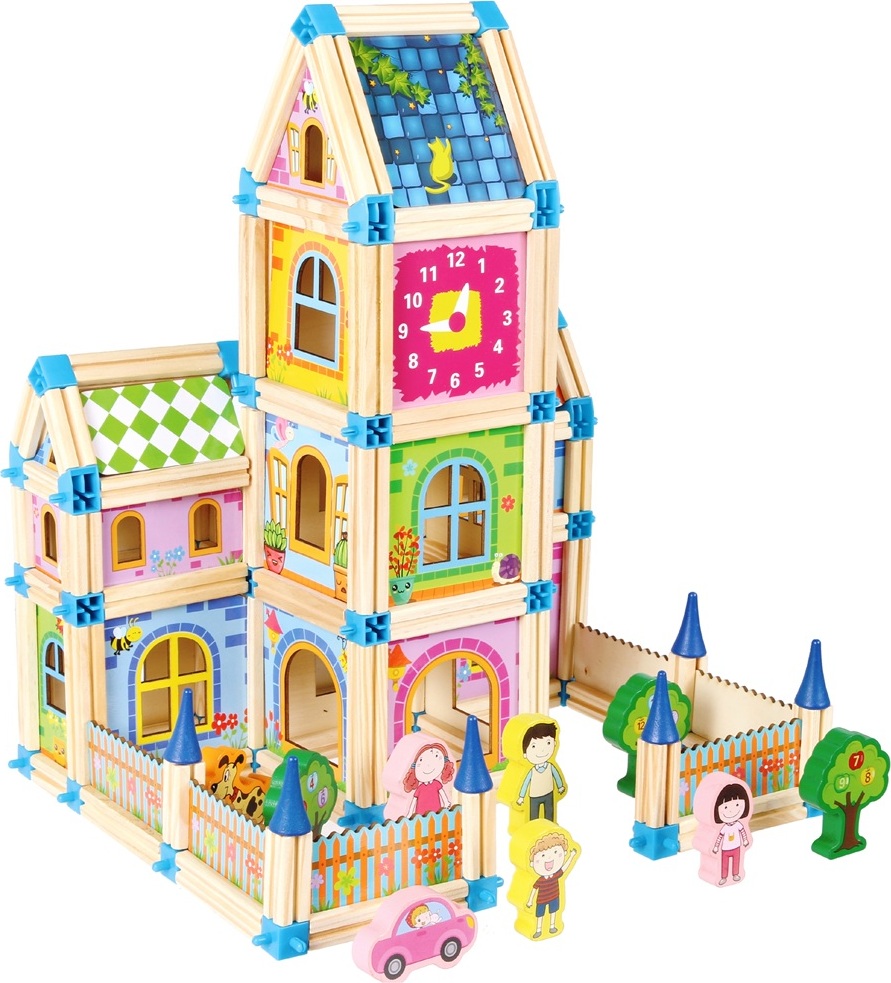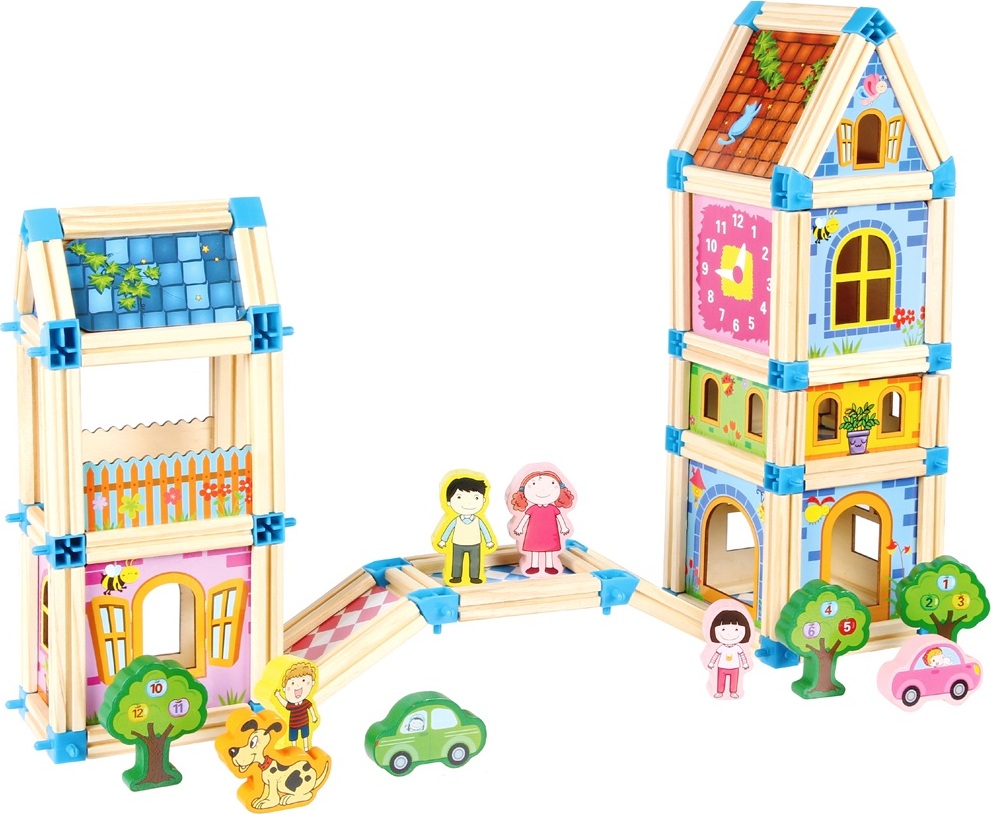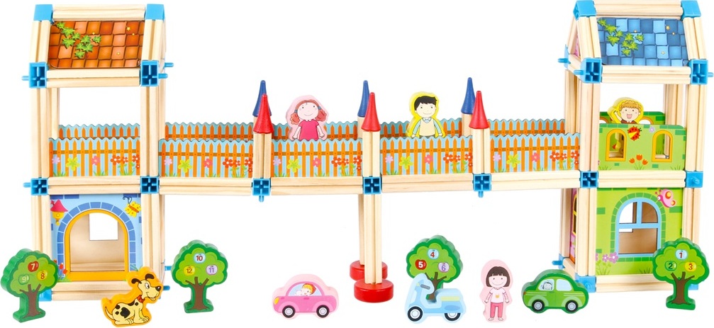 S touto barevnou stavebnicí se fantazii meze nekladou! Stavebnice obsahuje 268 dílků ze dřeva a plastových spojů, se kterými můžete stavět cokoliv. Domy, hrady, paláce a mnoho dalšího. Zkrátka vše dle Vaší představivosti. Propracovaný design, různé velikosti a řada barevných kontrastů povzbuzují děti, aby rozšířily své logické myšlení. Zatímco pro děti je hlavní zábava, jemná motorika, představivost a kreativita se při stavbě přirozeně rozvíjí. Abyste mohli začít stavět hned, obsahuje každá sada kvalitní brožuru s několika návrhy a nápady na kreativní stavby.