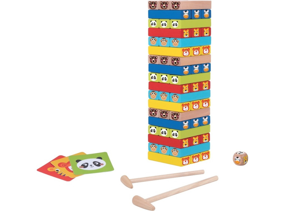 Kdo má nejjistější ruku? Pestrobarevné dílky se zvířátky dělají tuto Jengu opravdu speciální! Ve hře musí hráči prokázat svou trpělivost a soustředění. Hlavním principem je střídavé vytahování bloků z věže, aniž by byla převrhnuta. Pokud vás to omrzí, můžete si z dílků vytvářet pozoruhodné stavby a popustit tak uzdu fantazie! Zábava pro všechny věkové kategorie!