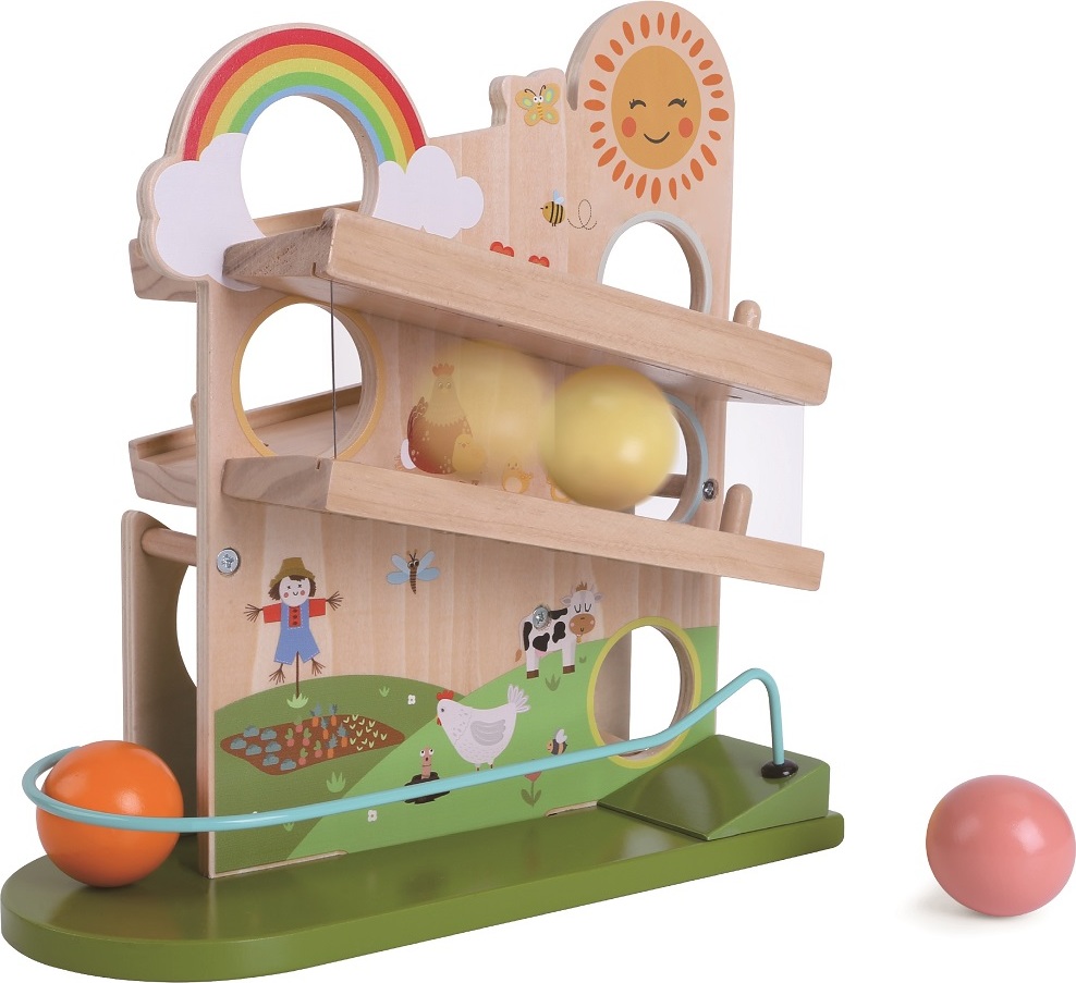 Naše kuličková dráha Šťastná farma to je ta pravá zábava na venkově! Objevte kouzelný svět farmy s touto kreativní kuličkovou dráhou, která nadchne děti i dospělé. Dráha s vesnickými motivy a designem roztomilých zvířátek vytváří veselou kulisu, ve které se kuličky kutálí, skáčou a sviští po klikatých cestách.