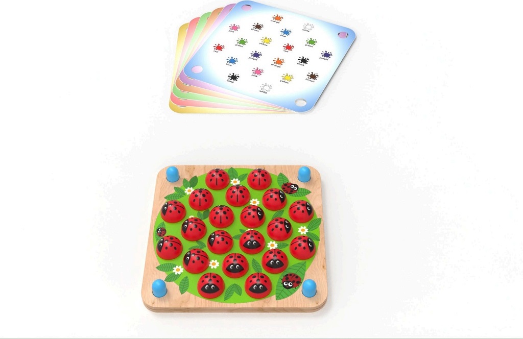 Vyberte si jednu z hracích karet. Zasuňte kartu mezi 2 dřevěné desky. Umístěte na obrázky přiložené berušky. Hra pokračuje jako klasické pexeso – hráč v každém kole obrací dvě berušky a hledá shodné dvojice. Vyhrává ten, kdo najde nejvíce dvojic.