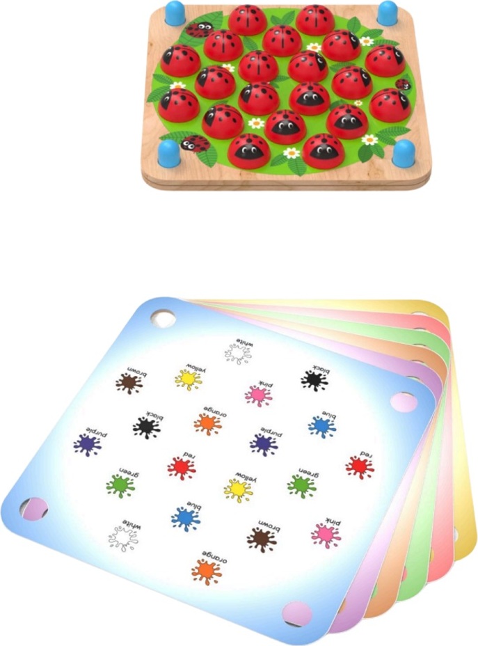 Pexeso, které učí i baví!Tato netradiční vzdělávací hra zaujme děti i dospělé hravou formou, která rozvíjí paměť, soustředění a pozorovací schopnosti. Na rozdíl od klasického pexesa děti neobracejí papírové kartičky, ale používají dřevěné berušky, které lépe padnou do malých dětských ručiček.Stačí mezi dvě dřevěné desky vložit jednu ze šesti tematických předloh, zakrýt obrázky beruškami a zábavná hra může začít. Děti si při ní procvičí nejen paměť, ale také jemnou motoriku, logické myšlení a rozšíří si slovní zásobu. Hra je ideální pro samostatné hraní i společné chvíle s rodinou.