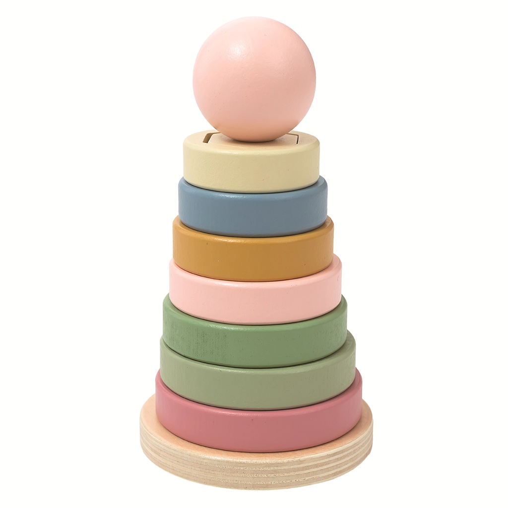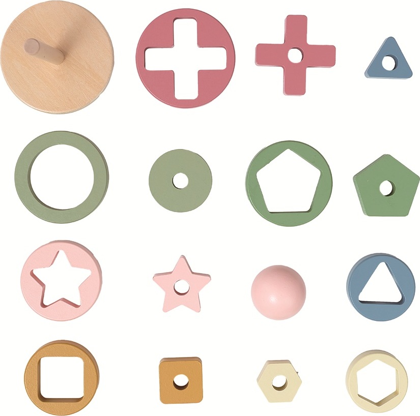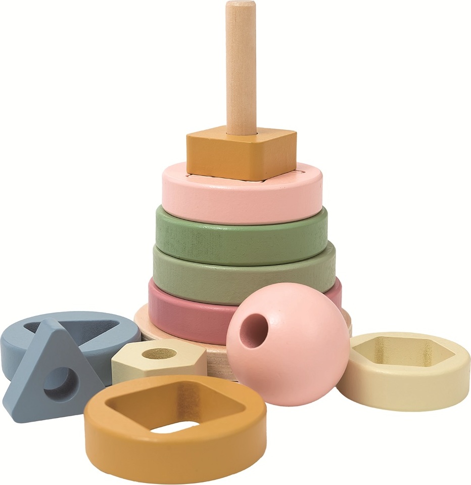 Panáček zve děti ke hře plné barev, tvarů a objevování! Na dřevěnou tyčku, která tvoří tělo panáčka, se postupně nasazují různě velké kroužky. Každý z nich ukrývá překvapení, uprostřed má výřez ve tvaru hvězdičky, čtverce, trojúhelníku a dalších, který dítě musí správně nasadit. Nakonec přijde na řadu kulatá hlavička a panáček je kompletní. Skládání rozvíjí jemnou motoriku, koordinaci ruka-oko i schopnost rozlišovat tvary a velikosti. Díky kombinaci dřevěného materiálu a přírodních zemitých odstínů se stane pěkným doplňkem dětského pokojíčku nebo herny.