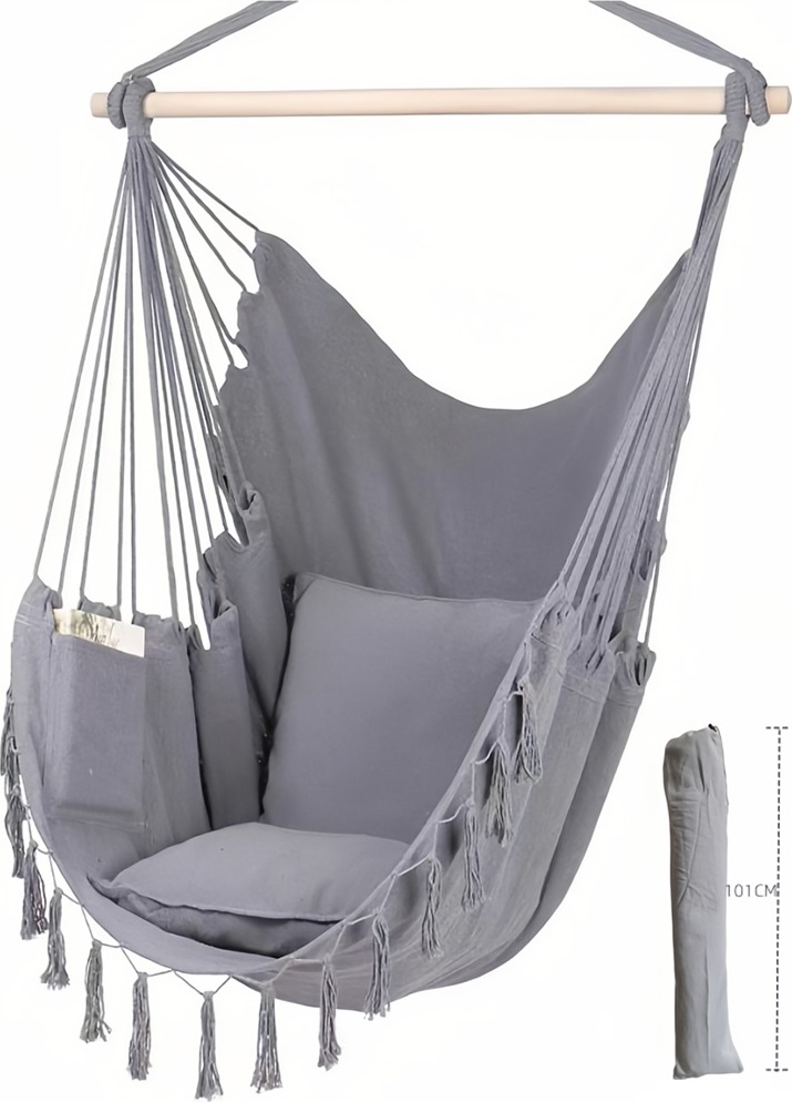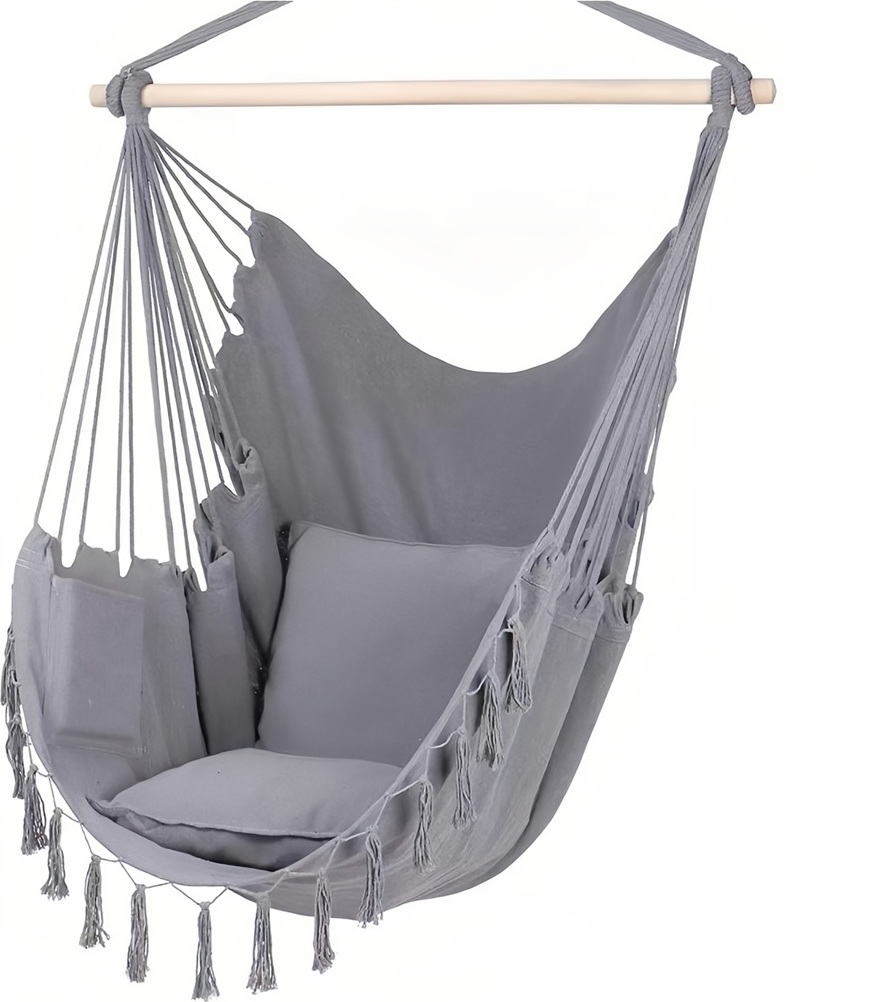 Pohodlí, relaxace a zábava! Závěsné houpací křeslo je ideálním místem pro relaxaci po náročném dni i pro klidné chvíle s oblíbenou knihou. Díky příjemnému bavlněnému materiálu nabízí maximální pohodlí a přirozeně se přizpůsobí tvaru těla. Jemné houpání navozuje pocit uvolnění a pohody, ať už ho umístíte na terasu, do zahrady, nebo do interiéru. Elegantní provedení a vzdušný design z něj dělají nejen pohodlný, ale i stylový doplněk, který dodá každému prostoru nádech útulnosti a lehkosti.