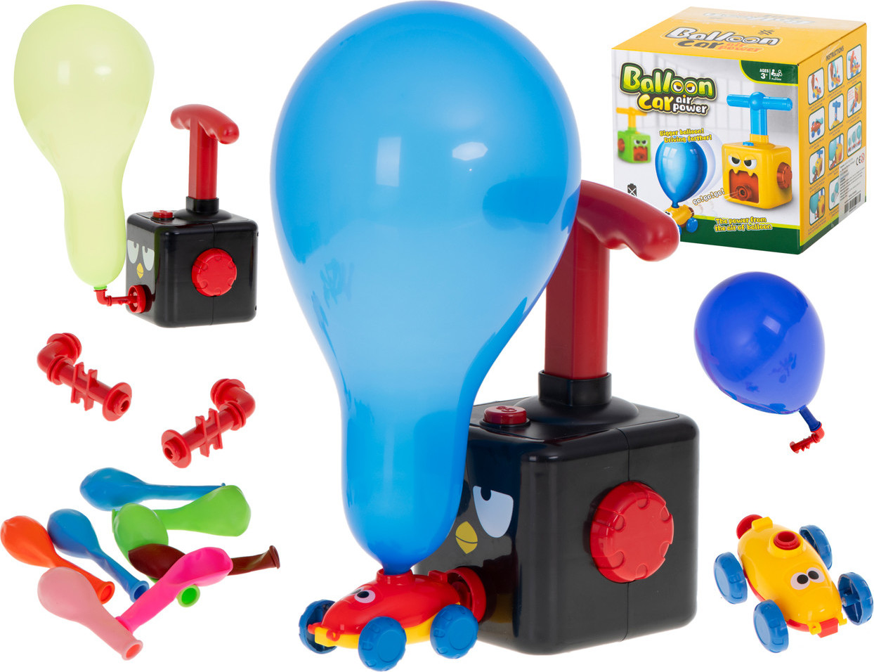 Začněte tím, že na auto umístíte vyfouknutý balónek. Poté auto připojte k odpalovacímu zařízení a balónek nafoukněte. Po nafouknutí balónku stiskněte tlačítko na odpalovacím zařízení a sledujte, jak rychle poletí po koberci v místnosti. Uspořádejte soutěž a zjistěte, které auto dokáže jet nejrychleji a nejdále. Unikátní hračka, která vám poskytne spoustu vzrušující zábavy.