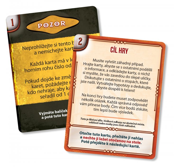 Detektivka , jak již samotný název napovídá, je série detektivních her z edice Mozkovna , ve kterých musíte přijít na kloub zločinu. Pouze pečlivou prací s informacemi můžete případ rozluštit. V průběhu hry získáváte informace a snažíte se vyhodnotit, zda budou pro vyřešení případu nějakým způsobem důležité, nebo se zbytečných informací zbavíte. Tím, že informaci zahrajete, dozvědí se údaj i ostatní hráči. Hry Detektivky jsou založeny na principu diskuze mezi hráči a kooperace. Na konci hry jsou hráči vyzváni, aby odpověděli na otázky týkající se případu. Podle toho, kolik jich správně odpoví, získají příslušný počet bodů. Hru můžete začít hrát takřka okamžitě - žádné studování pravidel. Karty vás postupně provází celou hrou a říkají, co se stalo a jak postupovat. Zážitek z celé hry obohacuje 3D místo činu vytvořené z karet. Upozornění: Hry Detektivky můžete hrát plnohodnotně pouze jednou (při opakovaném hraní už budete znát řešení případu). Darujte hru po odehrání přátelům a porovnejte si své výsledky.