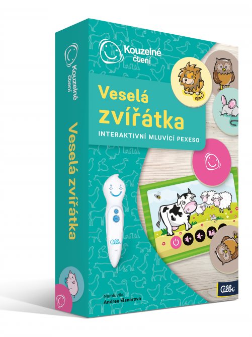 Populární Kouzelné čtení se rozrostlo o mluvící pexesa. Pexeso je známá a oblíbená hra. Ovšem díky zvukům získává zcela nový rozměr. Kouzelné mluvící pexeso Veselá zvířátka kombinuje procvičování vizuální a poslechové paměti dětí. Děti se tak budou učit rozeznávat zvuky, která nás obklopují. Nabízí více herních variant. Lze jej hrát jako klasické pexeso, kdy jsou všechny karty otočeny obrázky dolů a děti poznávají karty podle zvuku. Snadnější variantou je, že se otočí pouze půlka kartiček a děti hledají druhou kartičku podle zvuku.