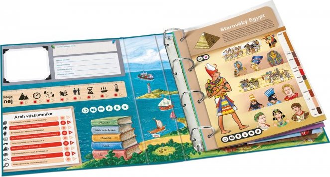 Pořadač obsahuje ozvučený deník mladého vědce a plochu na lepení milníkových samolepek. Máš unikátní možnost složit si vlastní encyklopedii jen z toho, co tě zajímá. Každý z Kouzelných dvoulistů, které se prodávají zvlášť , obsahuje množství odpovědí na otázky, které má každý začínající vědátor. Kouzelné dvoulisty poskytují detailní pohled na témata napříč lidským věděním. To vše jednoduše a hravou formou, která podpoří zájem o přírodu, planetu Zemi a okolní vesmír, dějiny lidstva i vědu a techniku. Nechybí samozřejmě ani velké množství kvízů. Kouzelné mluvící dvoulisty (nejsou součástí balení), vycházejí v řadách Příroda, Země, Věda a technika a Historie. Namluvila Vendula Fialová.