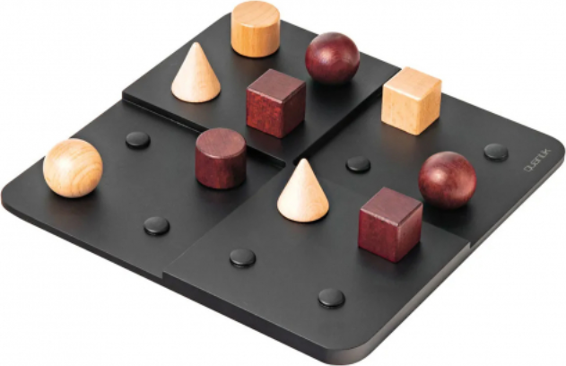 S abstraktní hrou Quantik pro dva hráče procvičíte logické myšlení i schopnost taktizovat. Hra má velmi jednoduchá pravidla - své figurky musíte umísťovat do řádku nebo sloupce, kde ještě stejný tvar nemá i váš soupeř. Vyhrává hráč, který jako první umístí do řádku nebo sloupce všechny své 4 tvary dřevěných figurek.