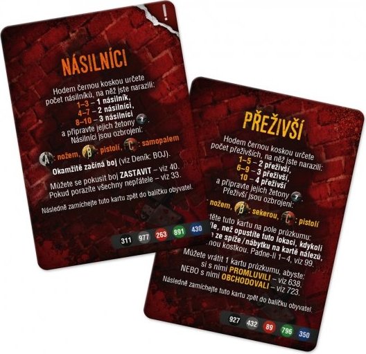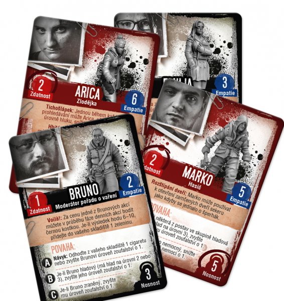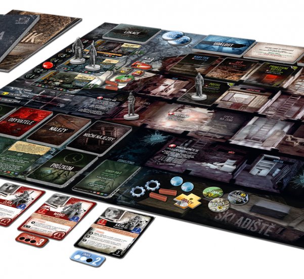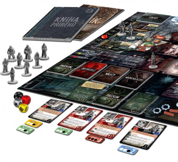 - deník, knihu příběhů, list scénářů, ukládací tabulky, oboustranný herní plán, 4 plastové základny figurek, 12 figurek, 4 hrací kostky, 200 karet, 186 kartónových žetonů, 33 plastových žetonů a pravidla.