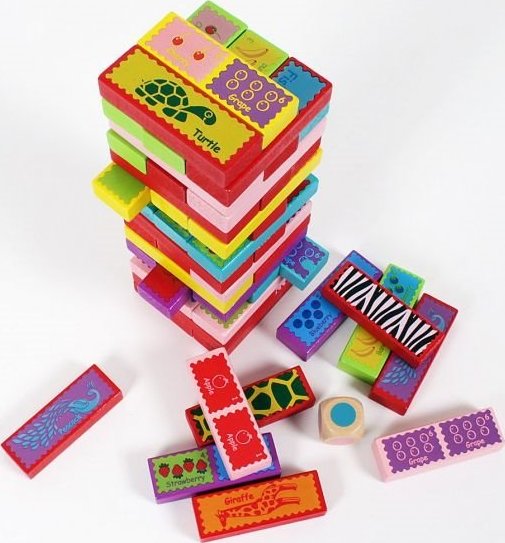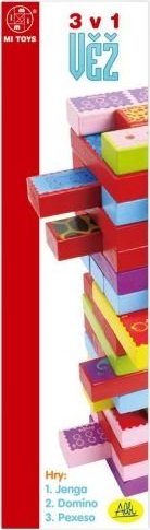 Zábavná věž 3v1 Dřevěná hra Věž dříve známá také jako "Jenga" pomáhá rozvíjet jemnou dětskou motoriku i soustředěnost. S barevnými dřevěnými kameny z Věže je možné hrát také pexeso a domino. Pexeso je skvělou cestou, jak trénovat paměť dětí, ale i dospělých. K dominu je třeba trochu té vizuální představivosti, ale zato si pořádně zasoutěžíte!