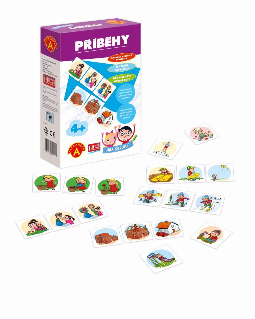 Úkolem je složit destičky s příběhy, tak aby na sebe postupně navazovaly a vznikl celý logický příběh ve správné časové posloupnosti. Při skládání příběhů, si děti povídají s rodiči a popisují to, co vidí na obrázcích. To je vede k rozšiřování slovní zásoby a zlepšení vyjadřování a také, za pomoci rodičů ke zlepšení výslovnosti.