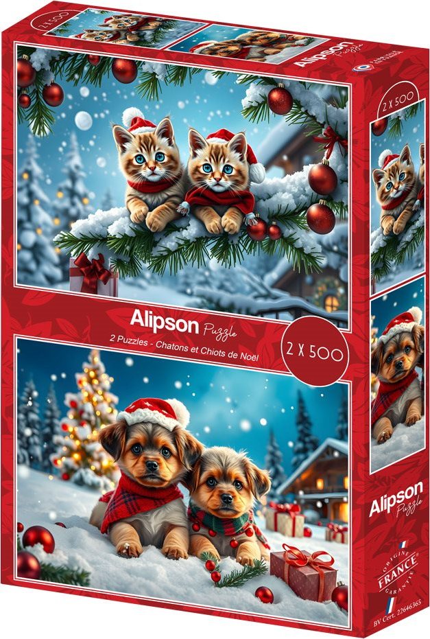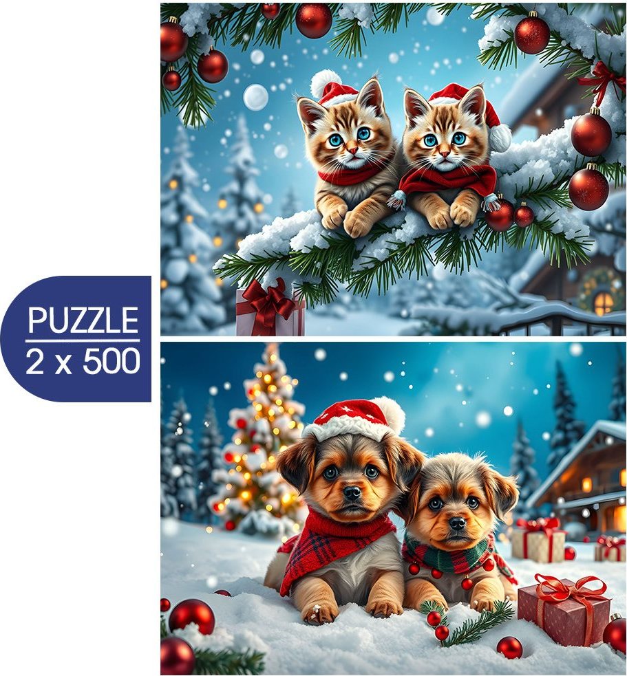 ALIPSON Puzzle Vánoční koťátka a štěňátka 2x500 dílků