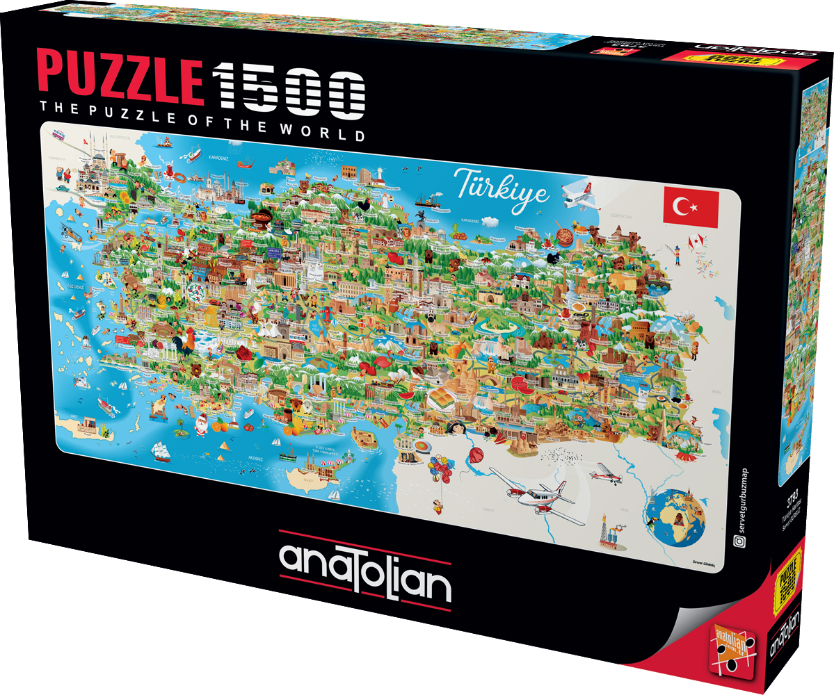 Puzzle je dodáváno s praktickým stojánkem, do kterého lze umístit víko krabice jako předlohu pro skládání. Upozornění: Veškeré texty a pojmenování na puzzle jsou v tureckém jazyce . Výrobce PERRE - ANATOLIAN poskytuje službu zaslání chybějícího dílku. Službu je možné využít za předpokladu, že motiv je stále v nabídce výrobce a je doloženo číslo výrobní šarže (uvedeno na papírovém stojánku nebo uvnitř krabice). Rozměr složeného puzzle cca 99 x 48 cmVlastnosti