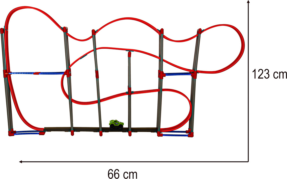 Tato dlouhá autodráha umožňuje dětem postavit složitou dráhu, a to i vzhůru nohama. 120 dílků umožňuje samostatnou stavbu dráhy o rozměrech 123 x 36 cm. Součástí dodávky je auto, napájené dvěma bateriemi AAA (nejsou součástí balení), které se samostatně pohybuje po dráze, zvládá ostré zatáčky a svahy, čímž stimuluje dětské pozorovací schopnosti a dodává hernímu zážitku dynamický nádech. Hračka podporuje rozvoj jemné motoriky a učí logické myšlení.