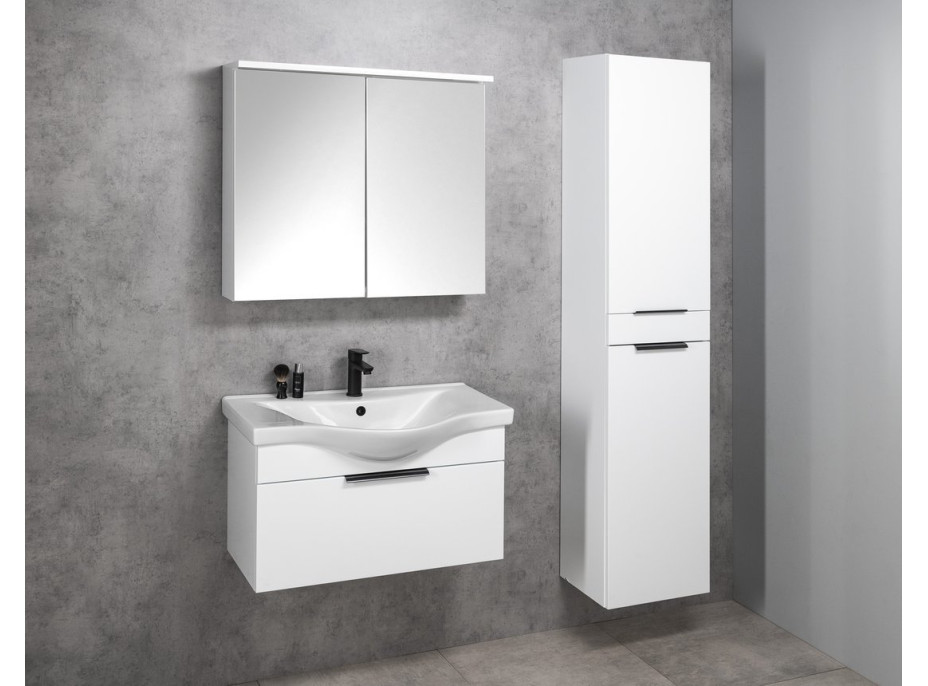 Kolekce AKIRA představuje moderní jednozásuvkový koupelnový nábytek určený pro oblíbená umyvadla ZARA. Madlo není součástí skříňky, na výběr je z několika doporučených variant nebo lze použít madla vlastní a sladit celkový design dle vlastních představ. Umyvadlové skříňky doplňuje model vysoké skříňky.