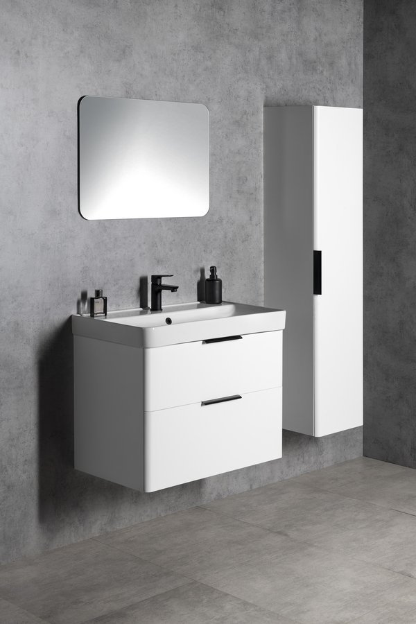 Kolekce DENEB představuje umyvadlové zásuvkové skříňky a doplňkovou vysokou skříňku v elegantním provedení se zaoblenými hranami v matně bílé. Černé zaoblené úchytky pak vkusně podtrhují a osvěžují celkový dojem. Pro umyvadlové skříňky jsou určena keramická umyvadla ZEN, která jsou navržena ve stejném stylu.