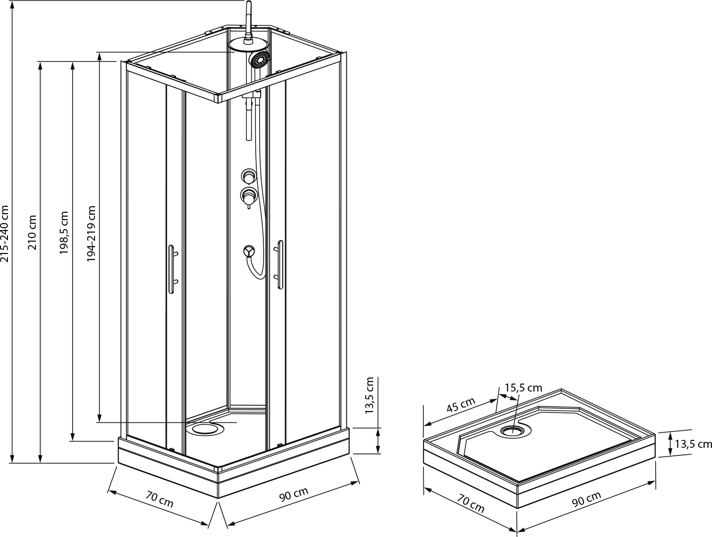 Sprchový box GRANVIK představuje jednoduché a ekonomické řešení v prostorách bez obložených stěn a vyřešené hydroizolace. Sprchový prostor je uzavřen zadními skleněnými stěnami. Součástí boxu je akrylátová samonosná vanička se sifonem. Uvnitř sprchového boxu Granvik naleznete multifunkční sprchový sloup s hlavovou sprchou s nastavitelnou výškou, ruční sprchou s jednou funkcí a pákovou baterií s přepínačem. Bezvadný chod zajišťují zdvojené horní i spodní ložiskové pojezdy. Spodní pojezdy jsou výklopné pro snadnou údržbu.