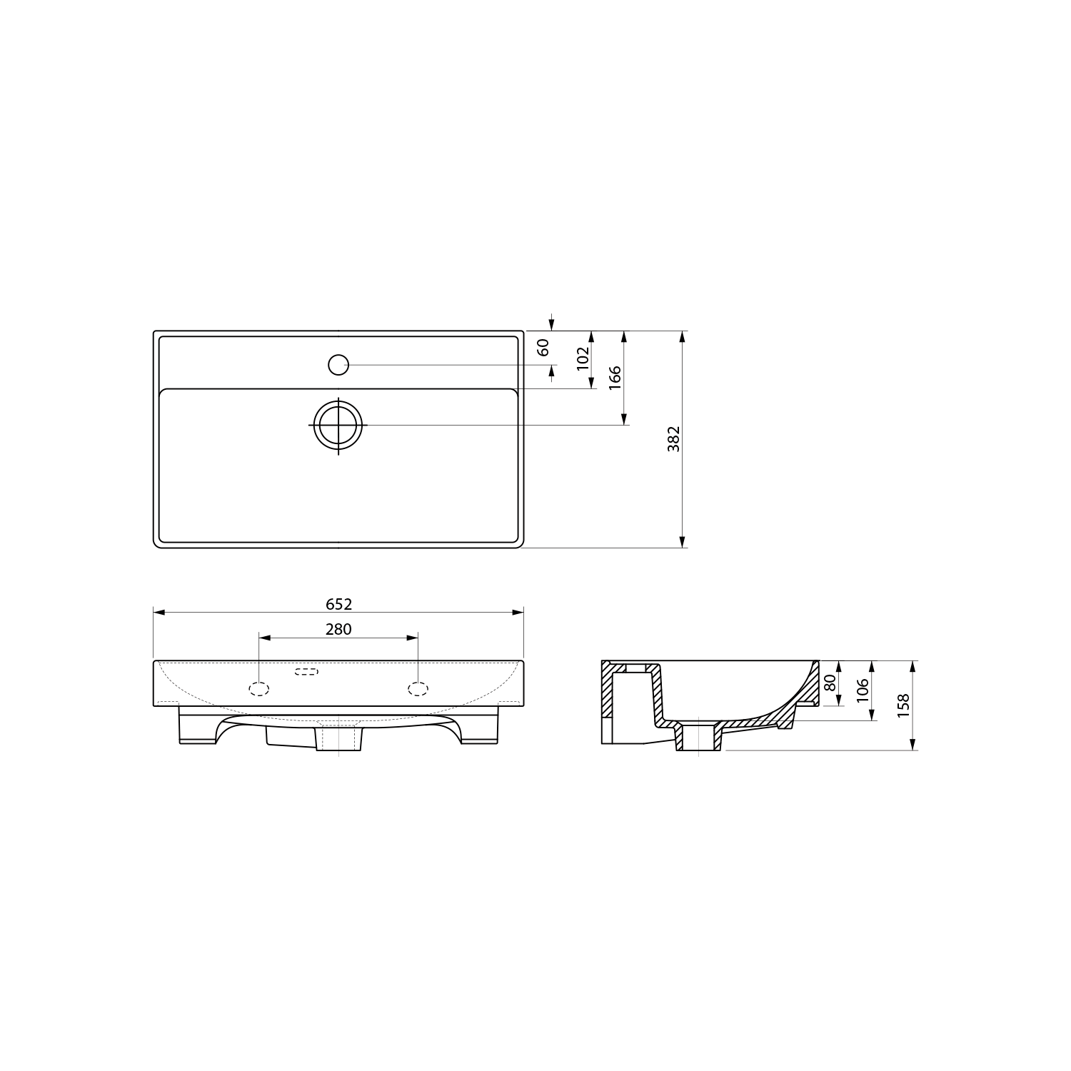 Aqualine PARLA keramické umyvadlo 65x38cm, bílá 9965