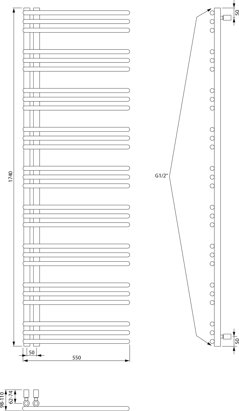 Klasické trubky s kruhovým profilem sestavené v designový radiátor, který lze díky středovému připojení s roztečí 50 mm kombinovat s ventily z naší nabídky.