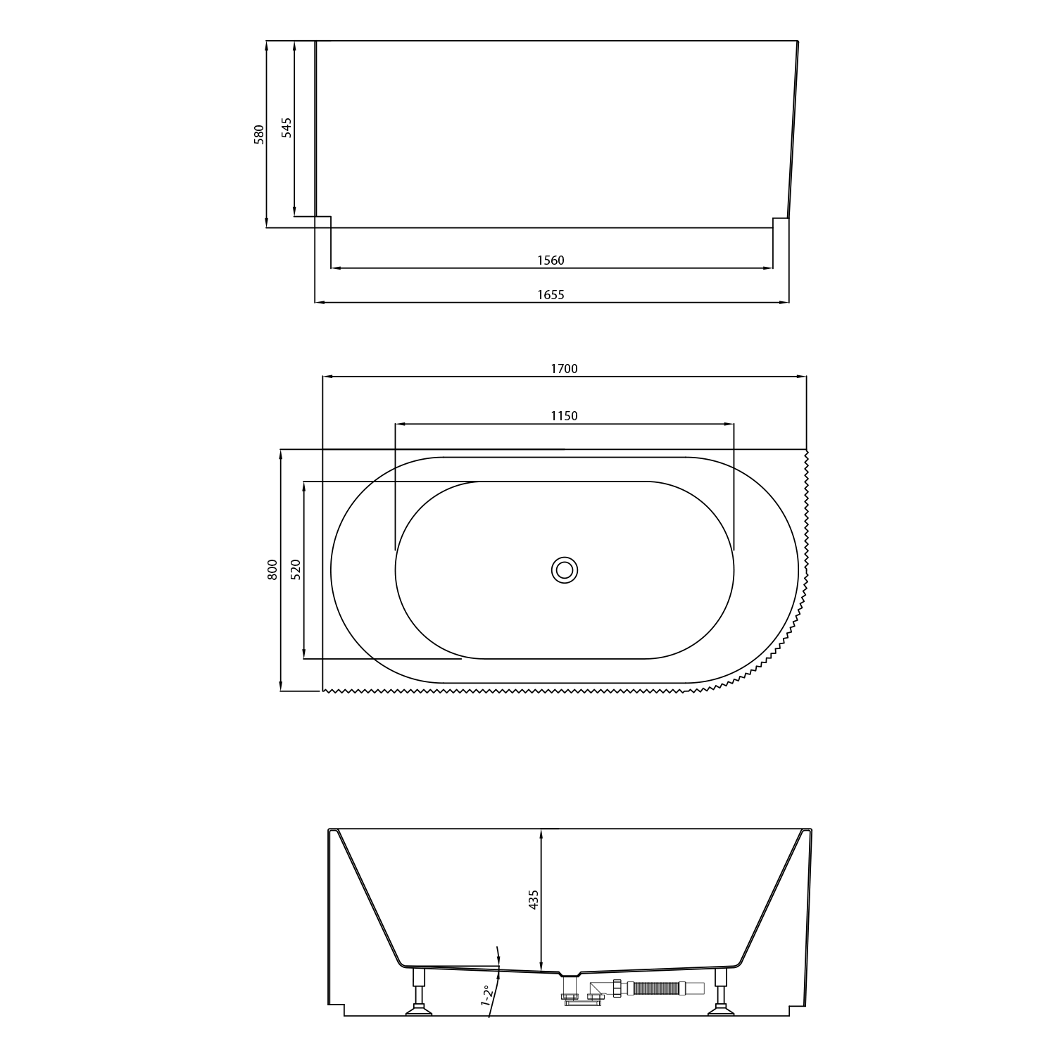 Aqualine TIBERA L rohová stojící vana, 170x81cm, panel vlnky, bílá E1026G