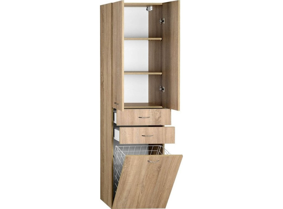 Aqualine ZOJA/KERAMIA FRESH skříňka vysoká s košem 50x184x29cm, dub platin 51295