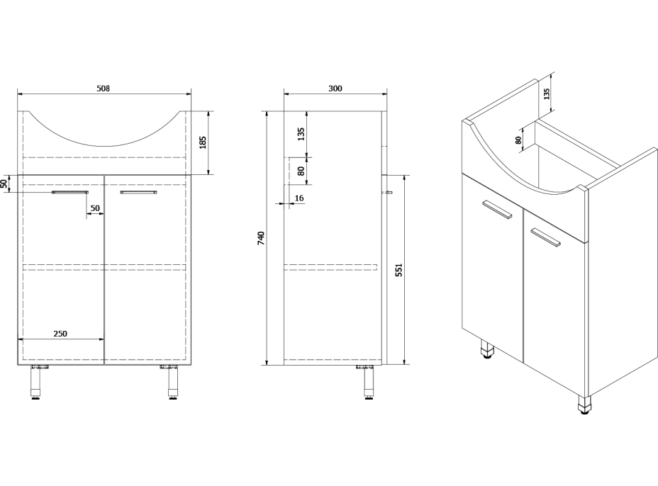 Aqualine ZOJA umyvadlová skříňka 50, 5x74x30cm, bílá 51055A