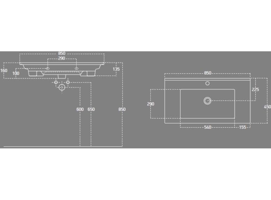 Aqualine ZUNO 85 keramické umyvadlo nábytkové 85x45cm, bílá 9085