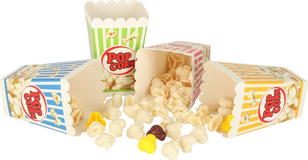 - 4 kartonové kbelíky na chytání popcornu.