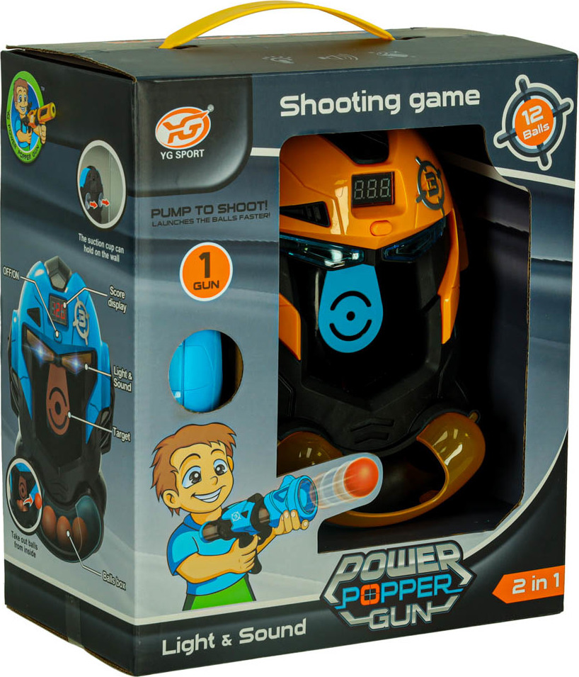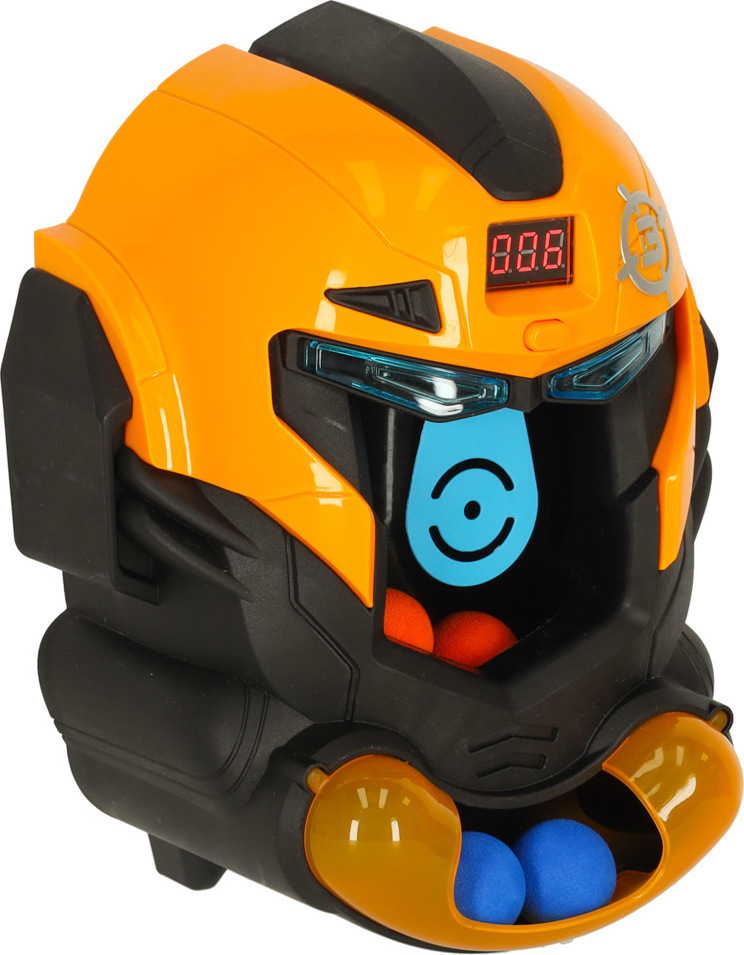 Tato arkádová hra spočívá ve střelbě pěnových kuliček na hlavu robota. Sada obsahuje plastovou pistoli a 12 broků. Hlava robota je vybavena LCD displejem, který počítá zásahy a motivuje děti ke zlepšení míření. Terč je napájen dvěma AA bateriemi (nejsou součástí balení). Hračka má světelné a zvukové efekty, které děti zapojují a stimulují jejich smysly. Podporuje rozvoj jemné motoriky a míření.