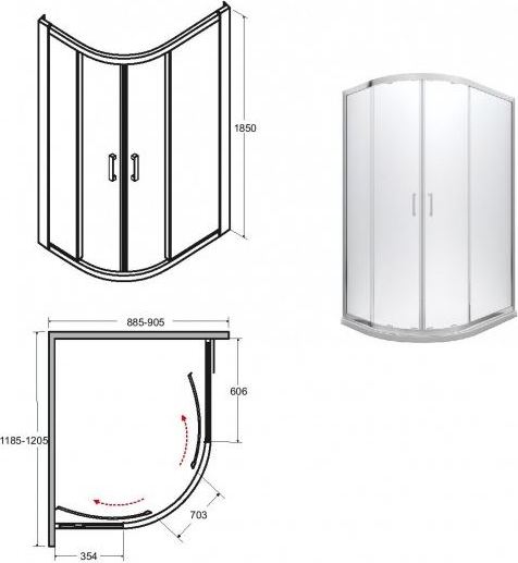 Set čtvrtkruhového asymetrického sprchového koutu MODERN 185 s vaničkou z litého mramoru LAKA vyniká kvalitním zpracováním hliníkového rámu v barvě lesklého chromu, který spolu s magnetickým dovíráním, zajistí jeho dokonalou těsnost. Maximální bezpečí zajistí bezpečnostní sklo (6 mm) a lehký posun ložiskové pojezdy. Set je včetně exkluzivní čtvrtkruhové asymetrické sprchové vaničky LAKA z litého mramoru s designovou krytkou sifonu. Povrch sprchové vaničky je opatřen protiskluzovou vrstvou, která výrazně zvyšuje bezpečnost sprchování. Sprchový kout je vhodný pro nestandardní prostory koupelen a pro menší koupelny.