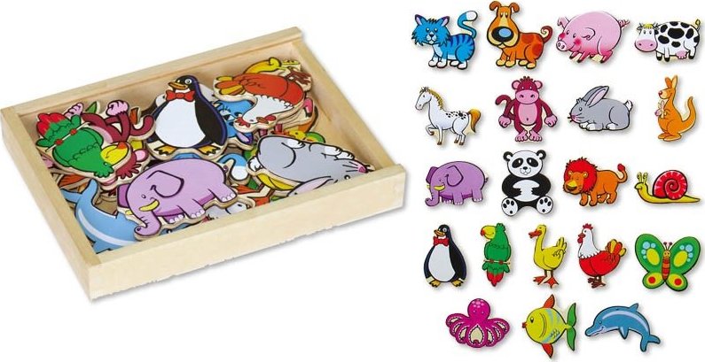 Už umíš poznávat zvířátka? Dřevěné magnetky seznámí děti se zvířátky. Holky i kluci se naučí pojmenovávat jednotlivá zvířátka. Jedná se o zábavnou a zároveň naučnou hračku, která pomáhá i těm menším rozšiřovat slovní zásobu. Zvířátka si děti mohou dát na lednici, futra dveří nebo tabuli. V dřevěné polokrabičce je celkem 20 magnetek. Nevhodné pro děti do 18 měsíců.Vlastnosti