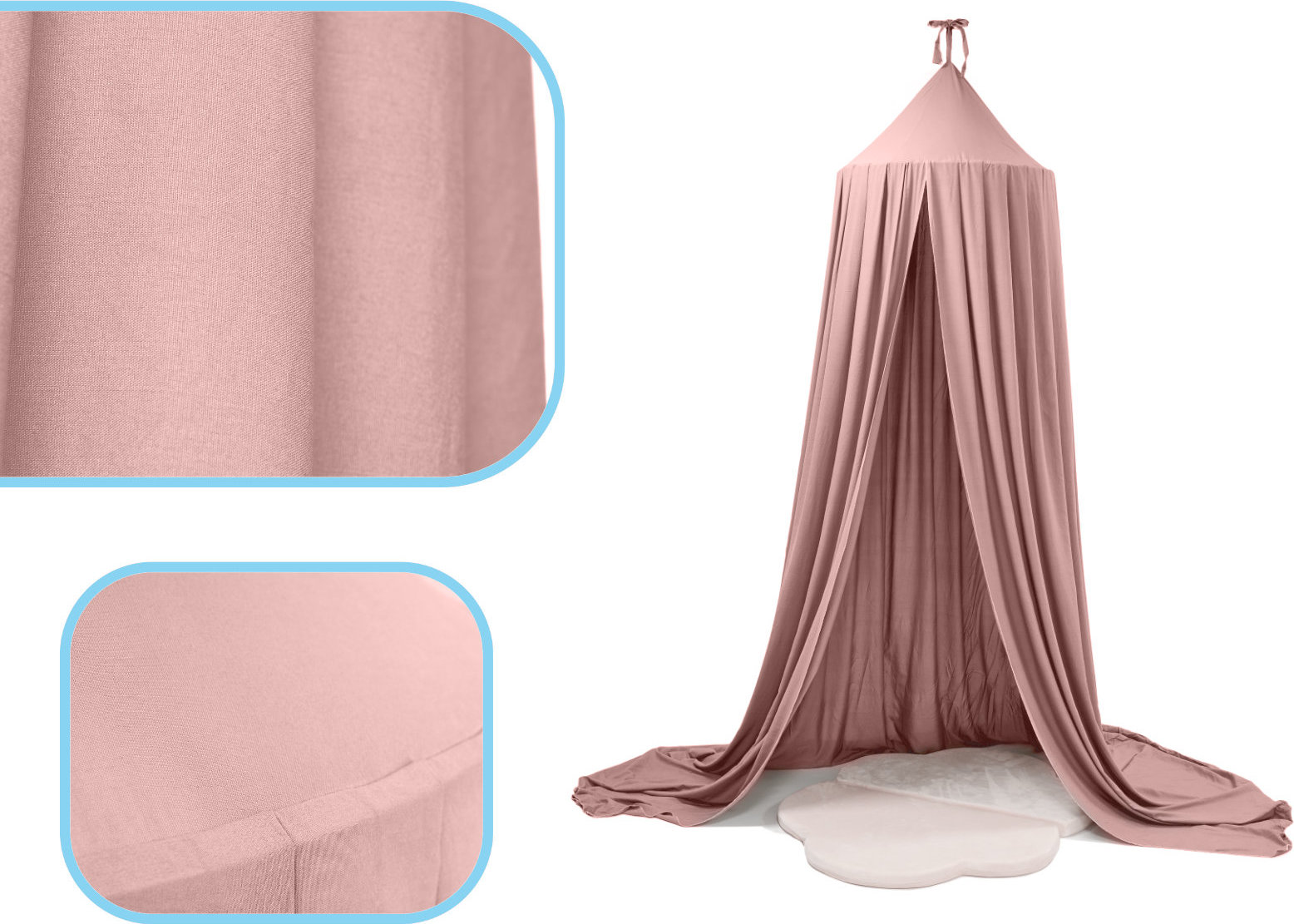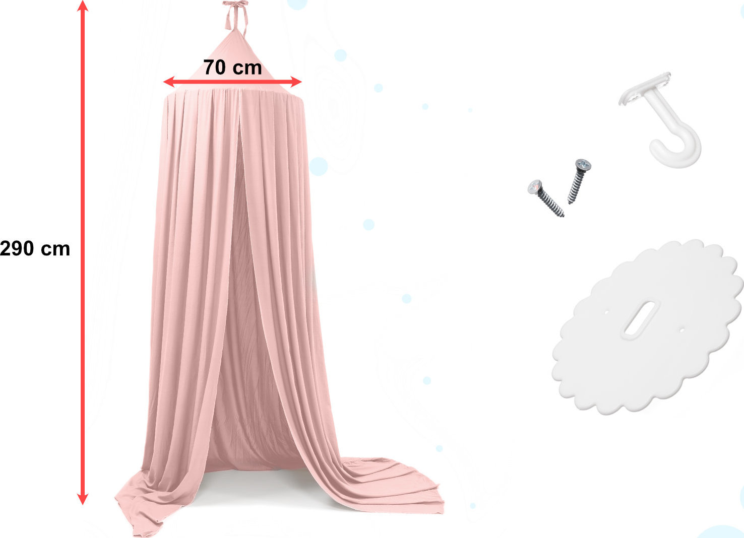 Jedinečný zavěšený baldachýn nejenže vypadá nápaditě, ale také zajistí, že vaše děťátko bude klidně spát. Je to elegantní a funkční dekorace do pokoje, která si získá srdce dítěte i rodičů. Baldachýn se snadno sestavuje - všechny součásti potřebné k jeho připevnění jsou součástí balení. Zavěšený nad dětskou postýlkou vytvoří bezpečnou a útulnou atmosféru a usnadní usínání. Ochrání vaše dítě před vnějšími podněty a zatemní prostor během odpoledního spánku. Baldachýn je také ideální jako stan. Bude to útulný úkryt, kde najdou útočiště plyšoví kamarádi, oblíbená autíčka, panenky nebo figurky. Bude to také ideální místo k odpočinku, uklidnění a společnému čtení knihy.