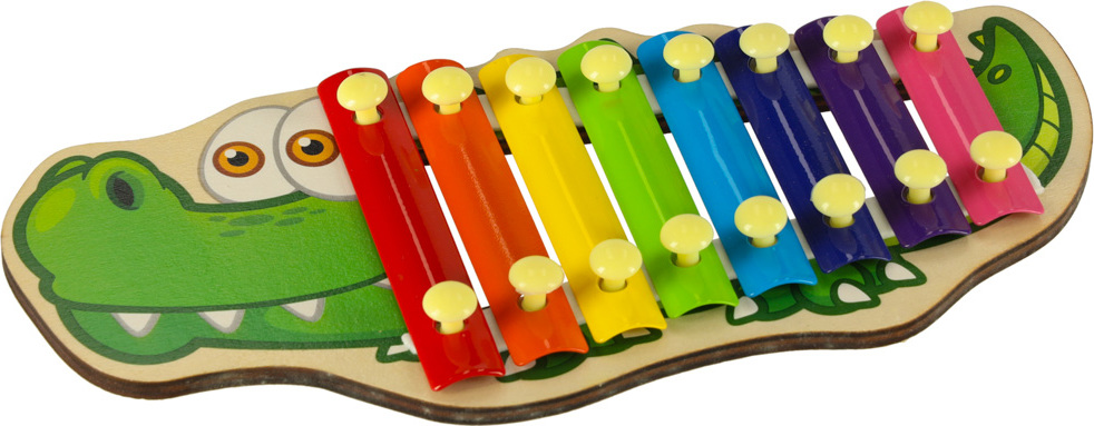Barevný dřevěný xylofon je ideální pro začínající hudebníky. Xylofon se skládá z osmi čepelí různých barev. Hra s nástrojem učí děti rozeznávat zvuky a prospívá jejich smyslu pro rytmus. Hračka navíc podněcuje kreativitu a tvůrčí myšlení, učí trpělivosti a zlepšuje paměť a soustředění. Osm různých zvuků vám umožní hrát jednoduché melodie. Je ideální jako první nástroj pro vaše dítě.