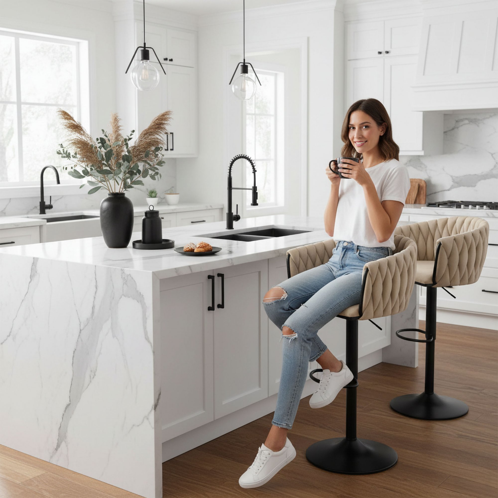 Stylová sametová stolička Cofton v béžové barvě je kombinací elegance, pohodlí a funkčnosti. Ideální do moderních kuchyní, kuchyňských ostrůvků nebo stylových domácích barů. Díky měkkému sametovému čalounění a robustní černé základně poskytuje pohodlné sezení a dodává luxusní nádech každému interiéru.