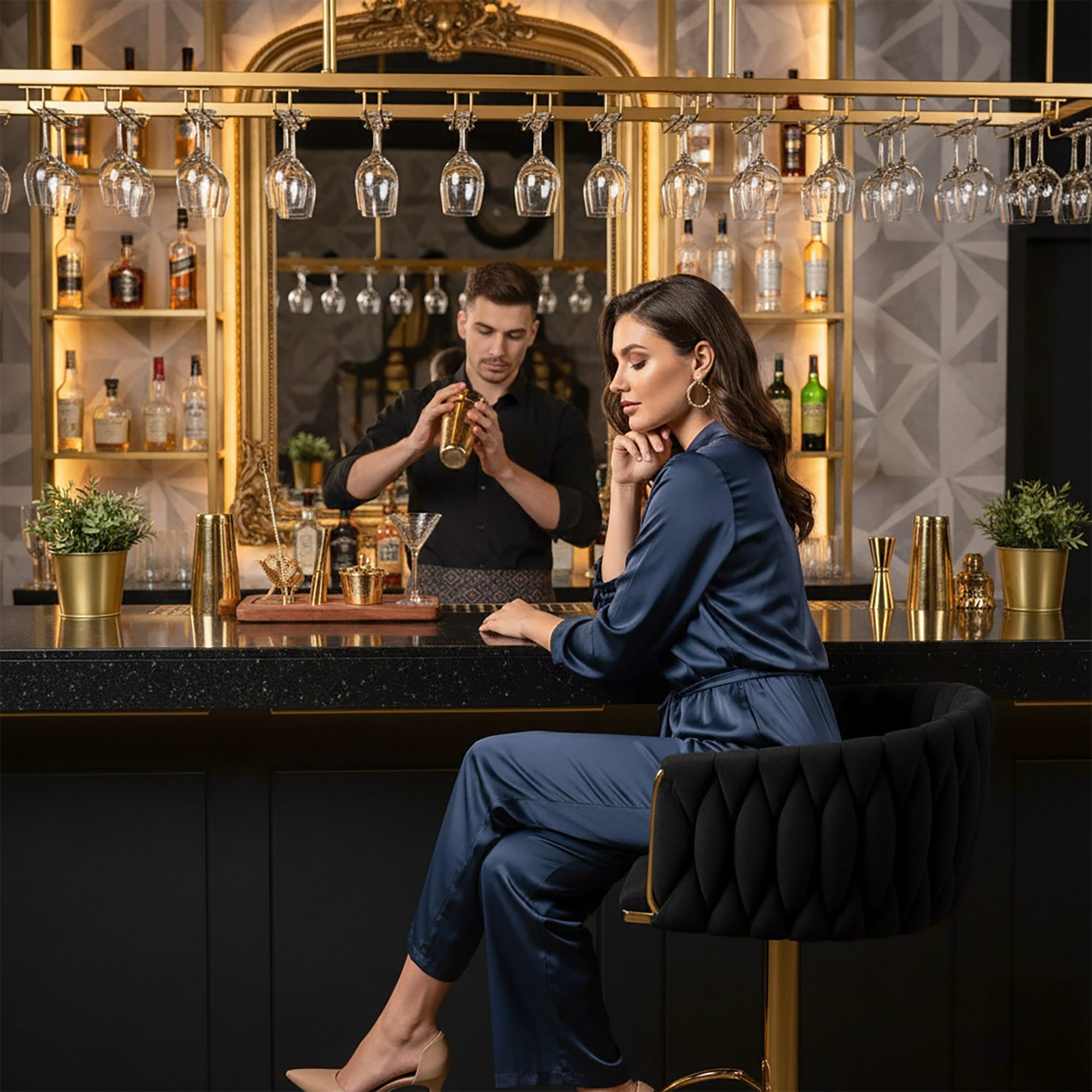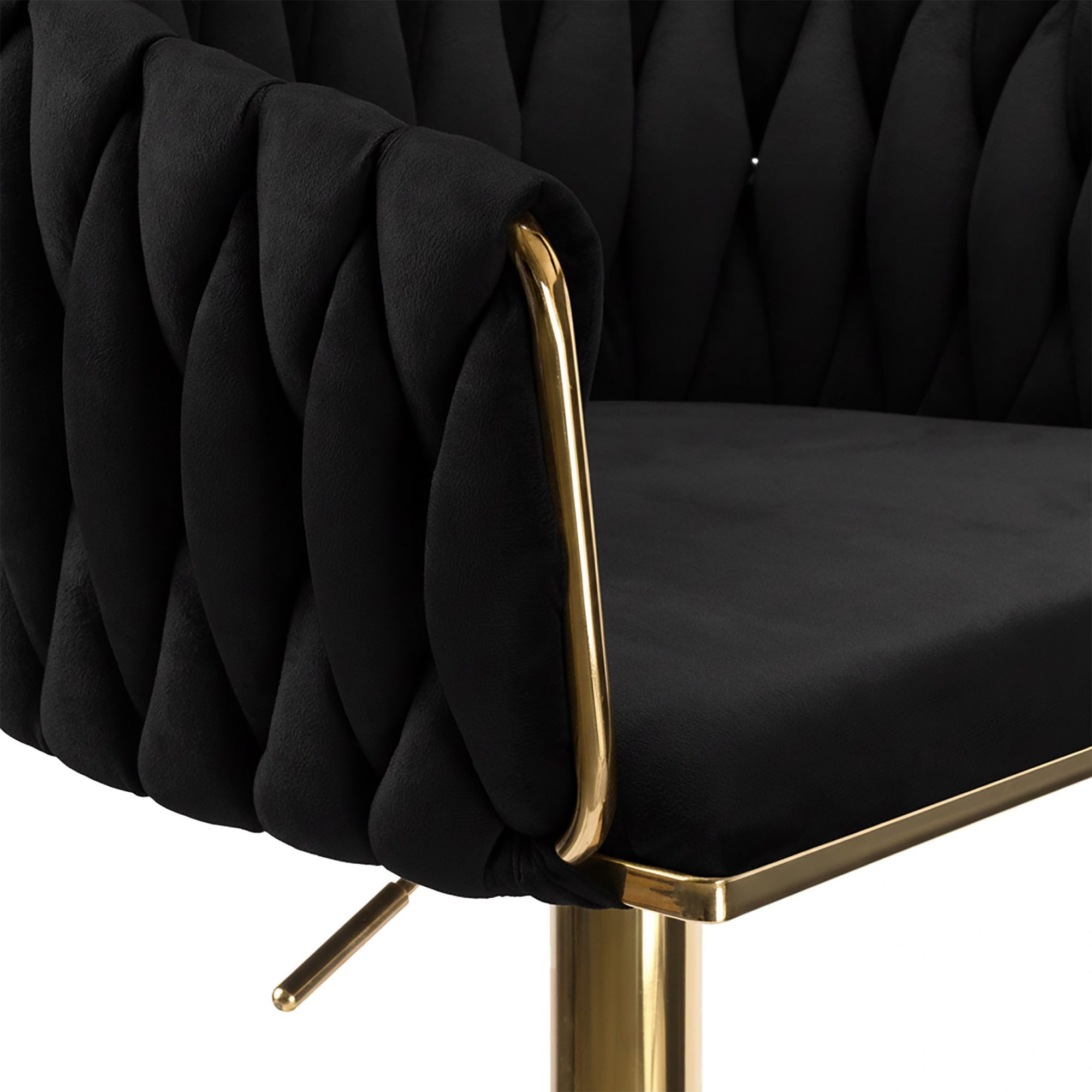 Stylová sametová stolička Cofton v černé barvě je kombinací elegance, pohodlí a funkčnosti. Ideální do moderních kuchyní, kuchyňských ostrůvků nebo stylových domácích barů. Díky měkkému sametovému čalounění a robustní zlaté základně poskytuje pohodlné sezení a dodává luxusní nádech každému interiéru.