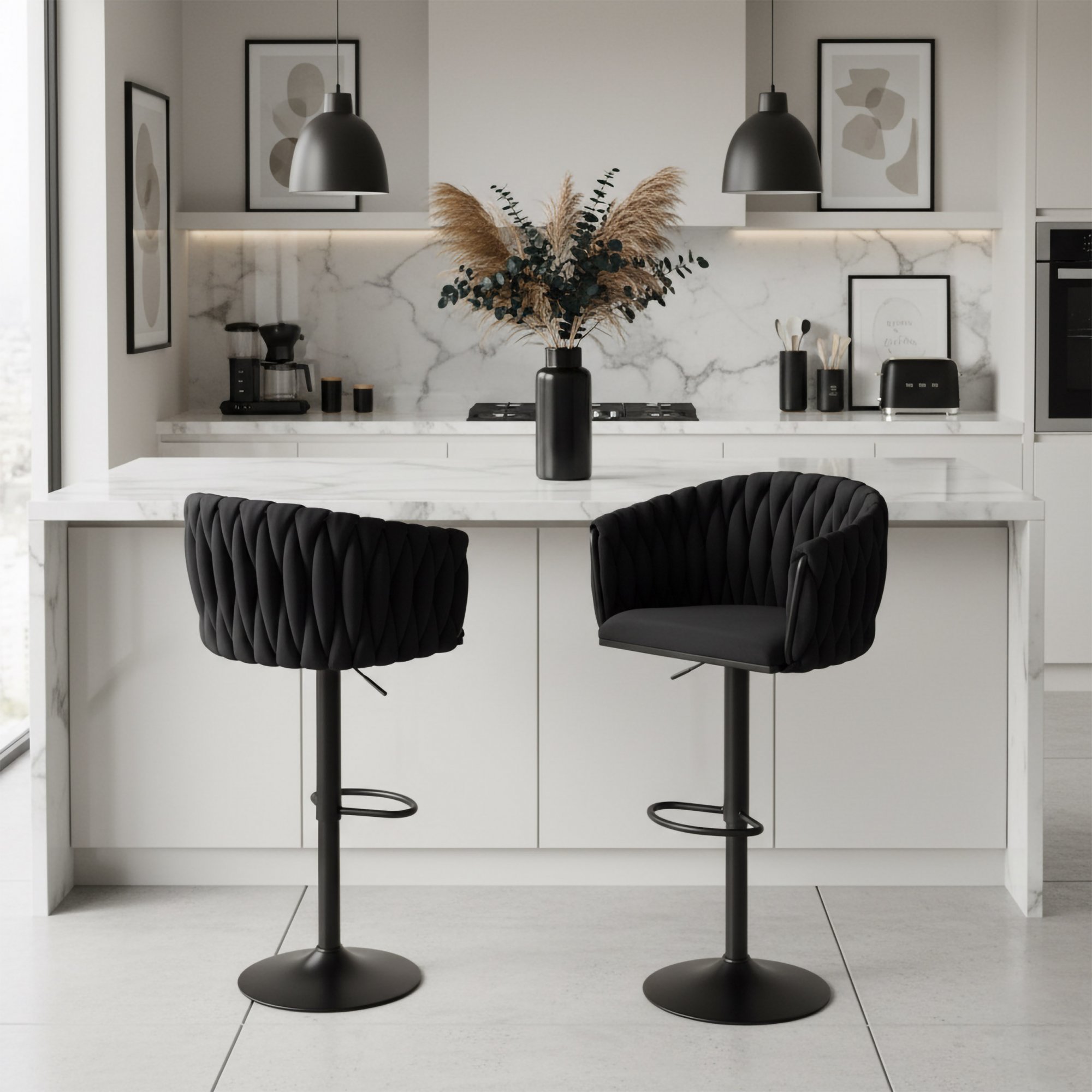 Stylová sametová stolička Cofton v černé barvě je kombinací elegance, pohodlí a funkčnosti. Ideální do moderních kuchyní, kuchyňských ostrůvků nebo stylových domácích barů. Díky měkkému sametovému čalounění a robustní černé základně poskytuje pohodlné sezení a dodává luxusní nádech každému interiéru.