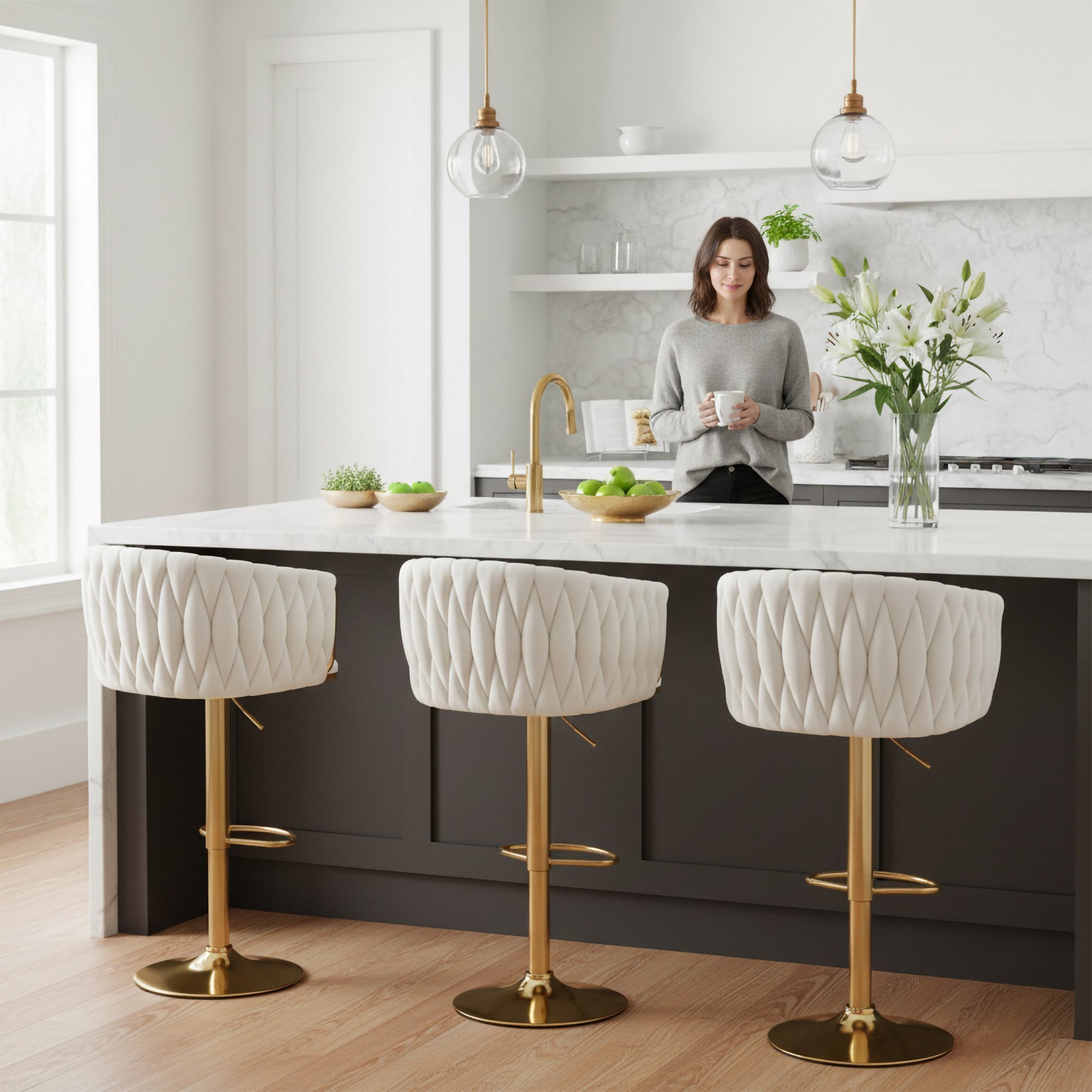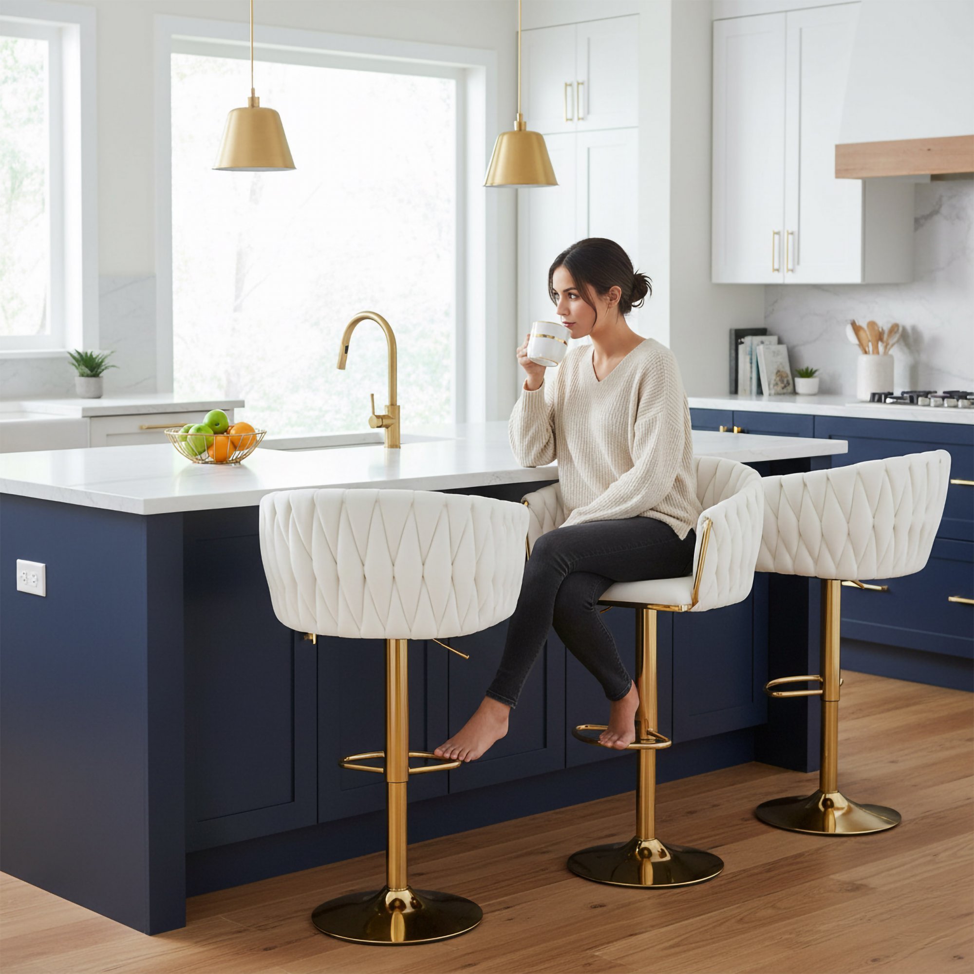 Stylová sametová stolička Cofton v krémové barvě je kombinací elegance, pohodlí a funkčnosti. Ideální do moderních kuchyní, kuchyňských ostrůvků nebo stylových domácích barů. Díky měkkému sametovému čalounění a robustní zlaté základně poskytuje pohodlné sezení a dodává luxusní nádech každému interiéru.
