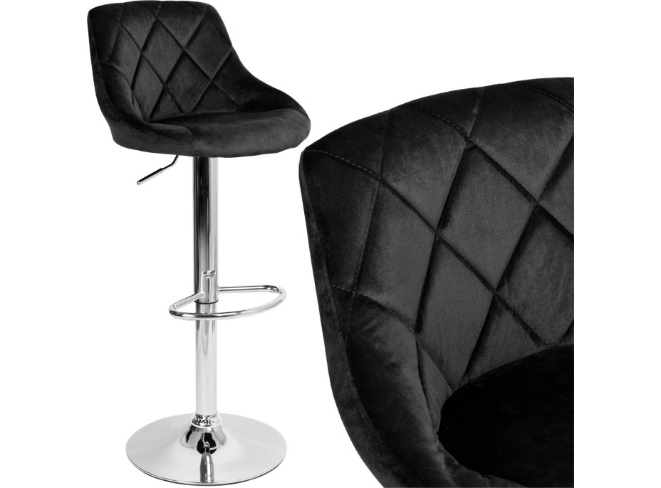 Elegantní barová židle CYDRO kombinuje pohodlí a eleganci. Zajímavé geometrické prošívání vytváří poutavý vzor. Pohodlný sedák je čalouněný kvalitní velurovou látkou, díky čemuž je příjemně měkký a pohodlný. Model má výškové nastavení, podnožku a stabilní protiskluzovou základnu. Pochromované prvky dodávají židli charakter a jedinečný styl, díky čemuž je model ideální pro moderní, loftové nebo skandinávské interiéry.