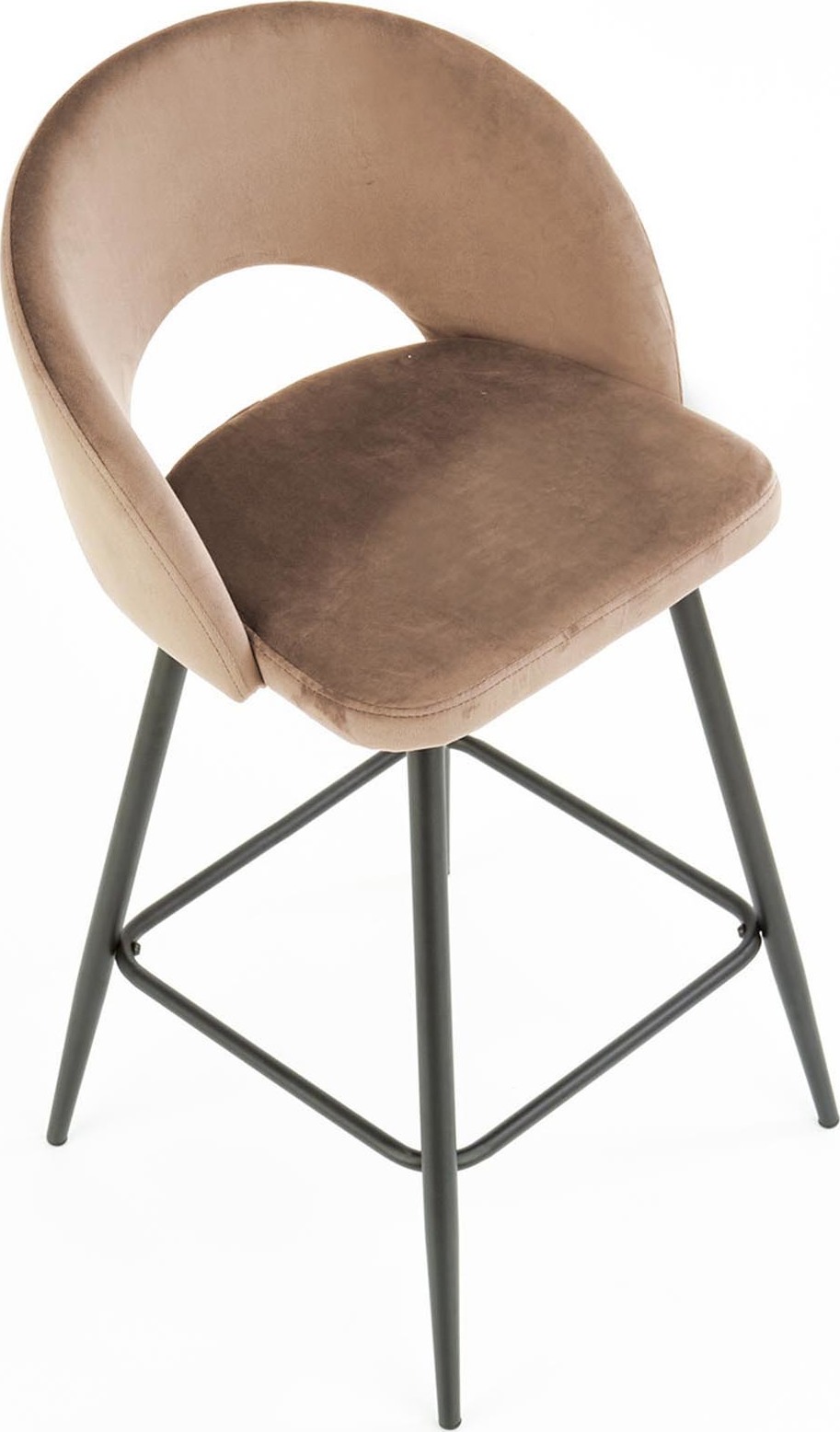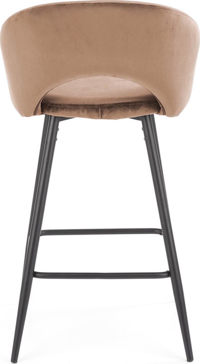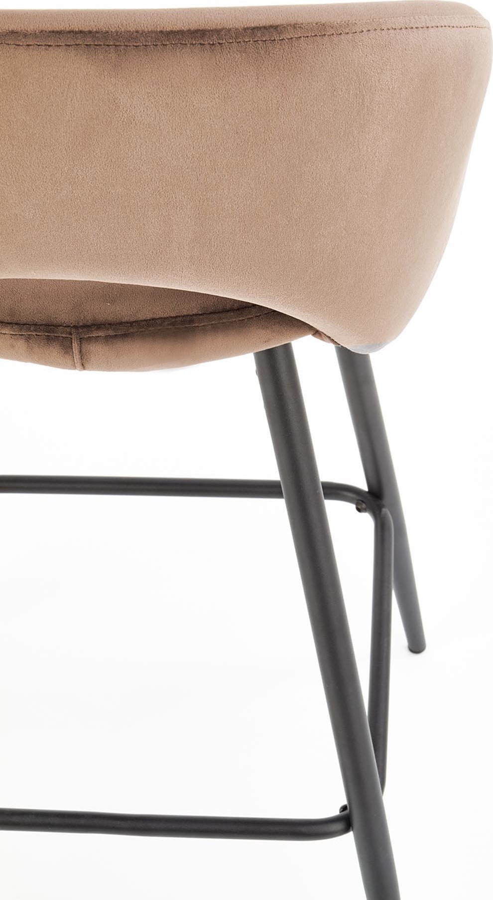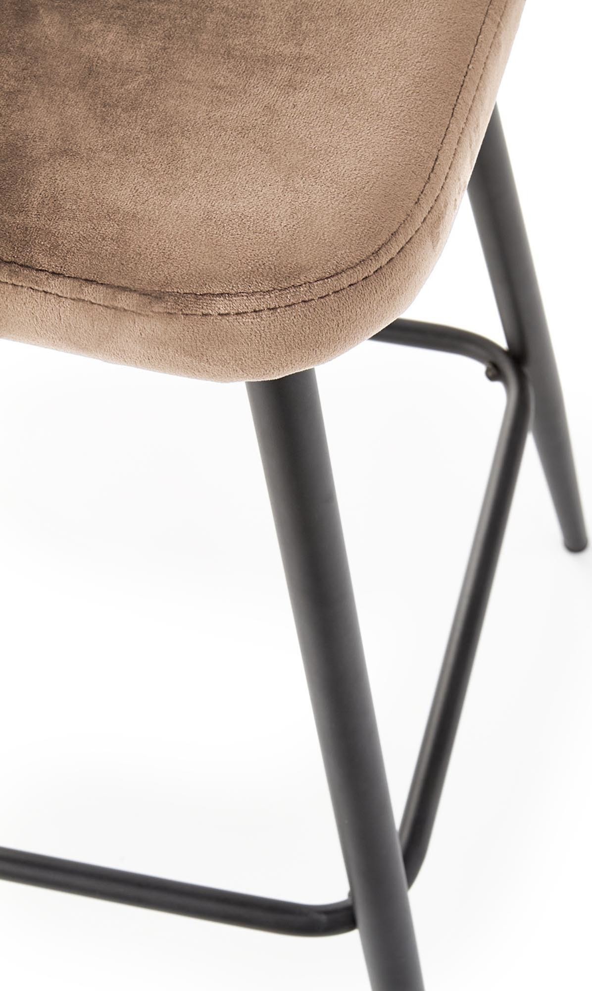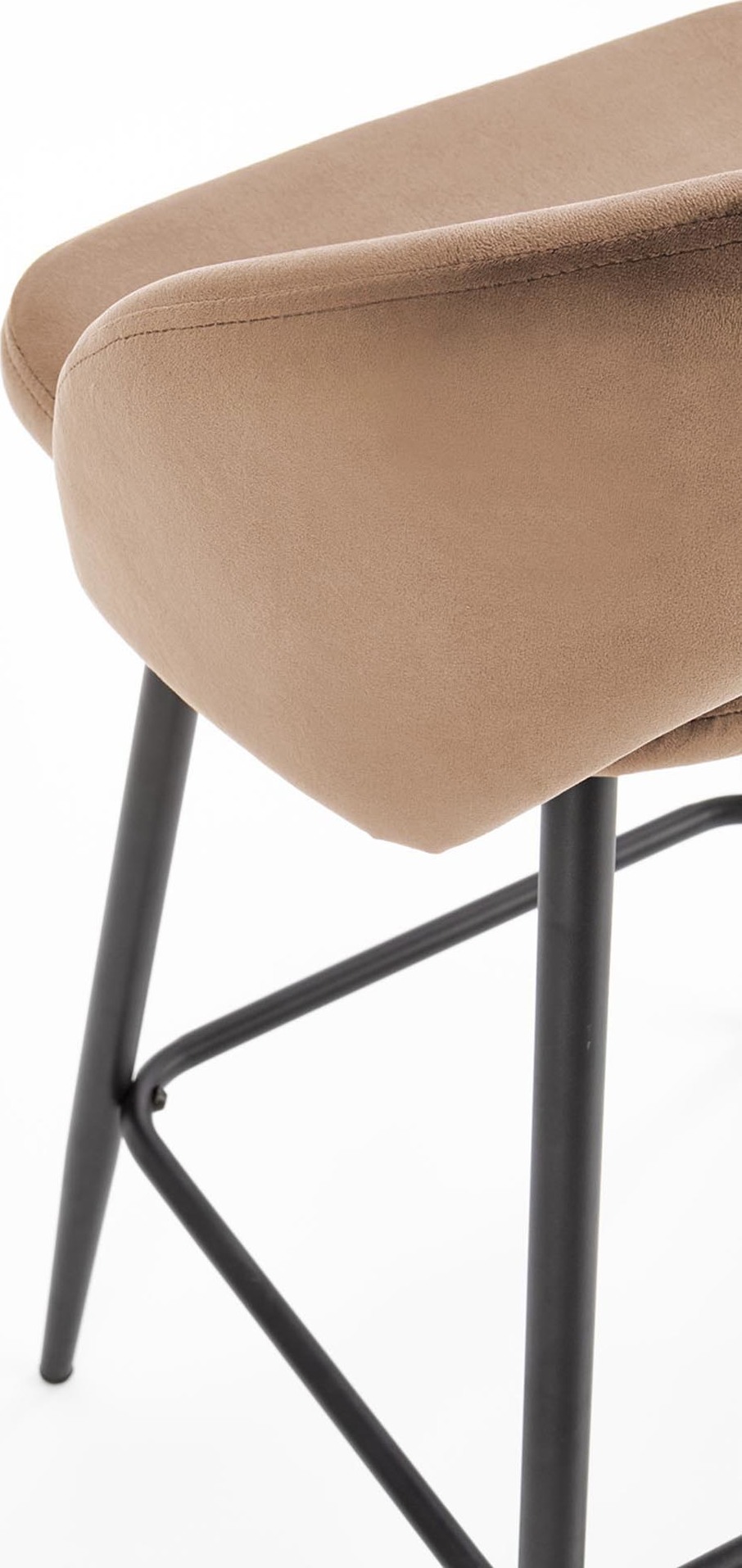 Moderní barová židle se sedákem potaženým kvalitní látkou s polstrováním. Stabilitu zajišťují nohy z práškově lakované oceli v černé barvě.