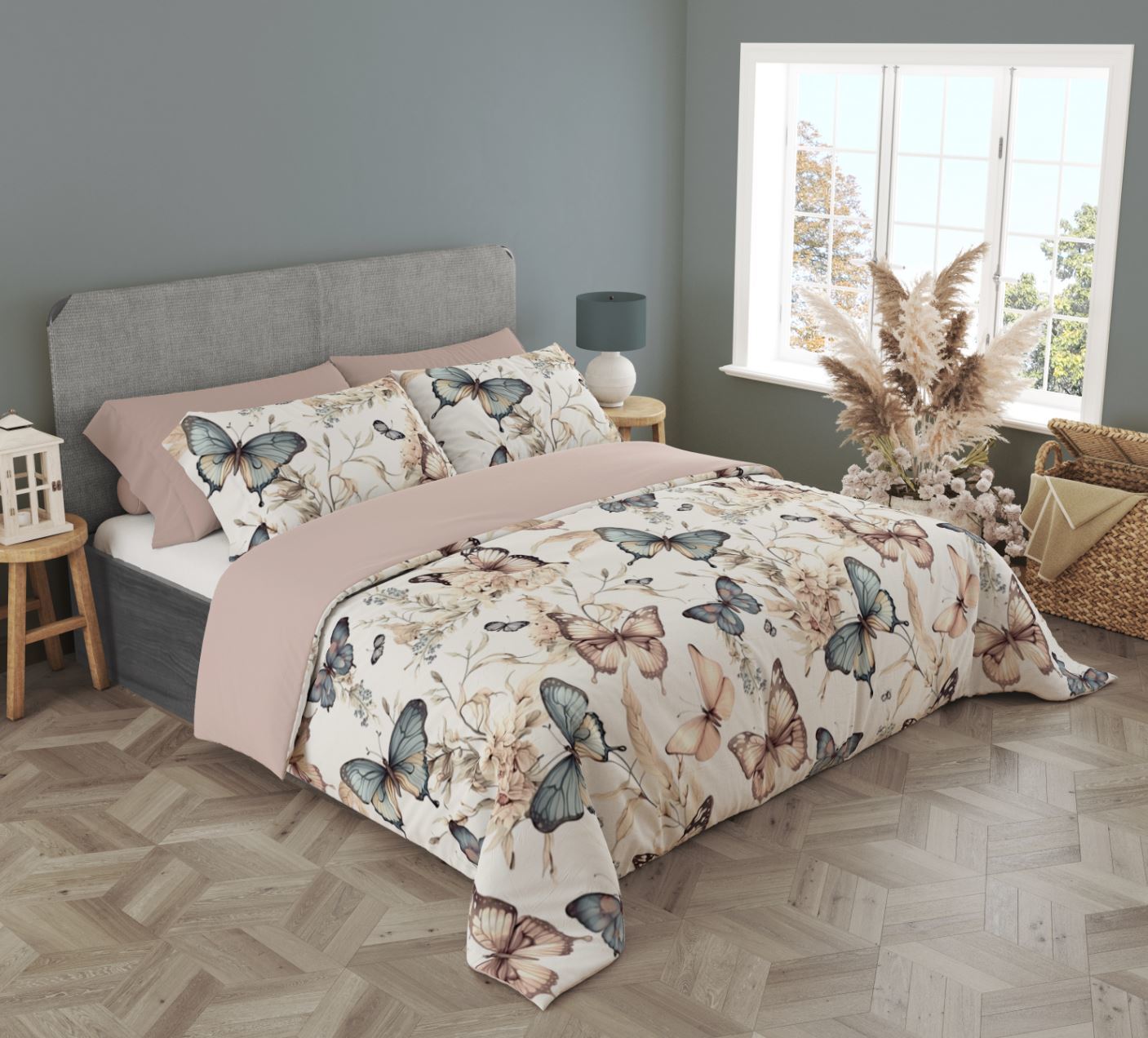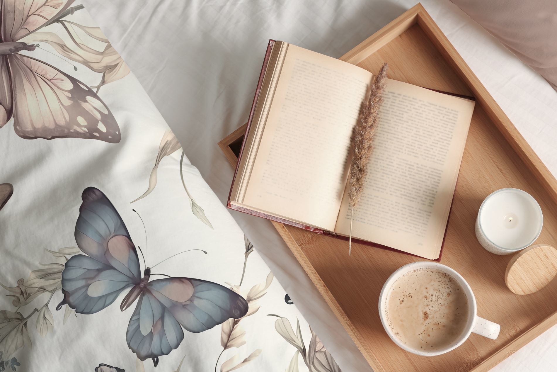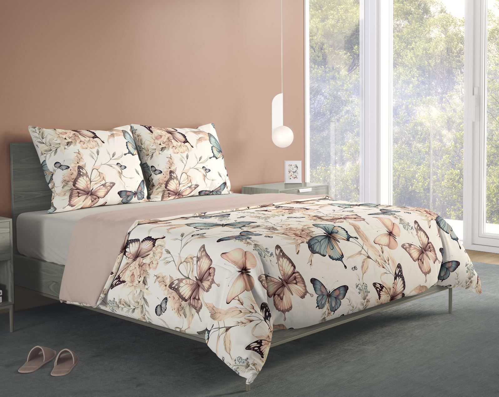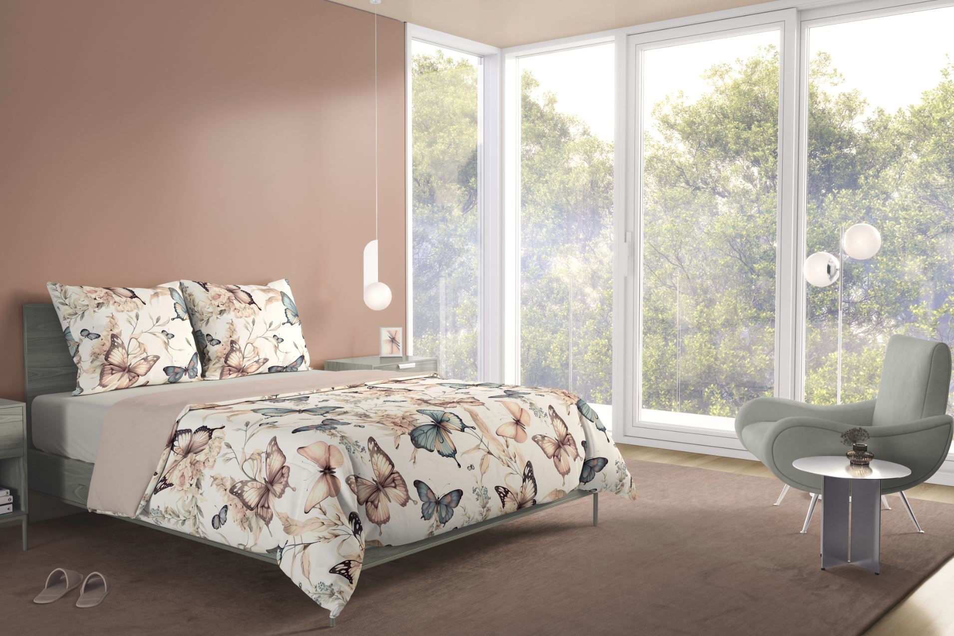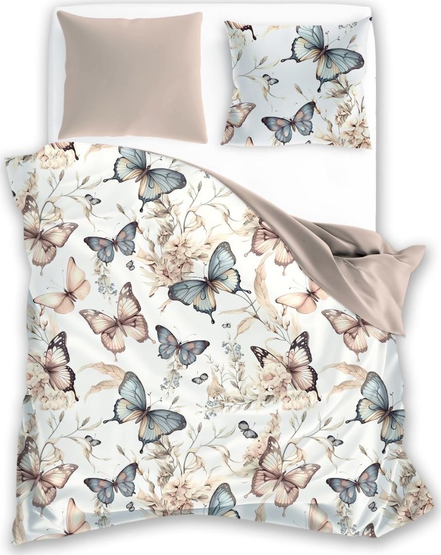 Bavlněné povlečení BOHO Motýlci - béžové/hnědé - 140x200 cm