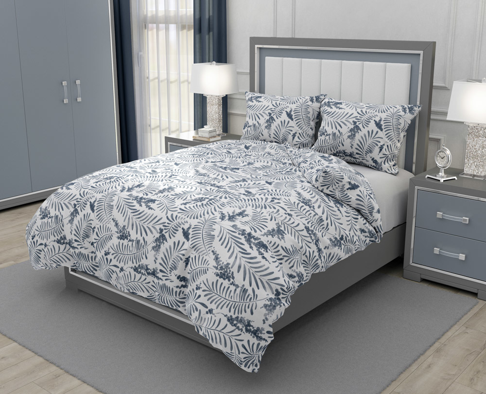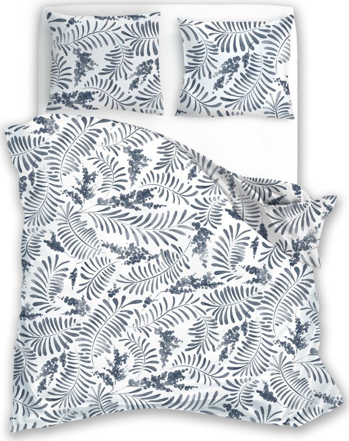 Bavlněné povlečení ELEGANT Flowers - bílé/šedé - 160x200 cm