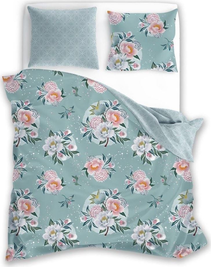 Bavlněné povlečení FLOWERS - tyrkysové - 220x200 cm