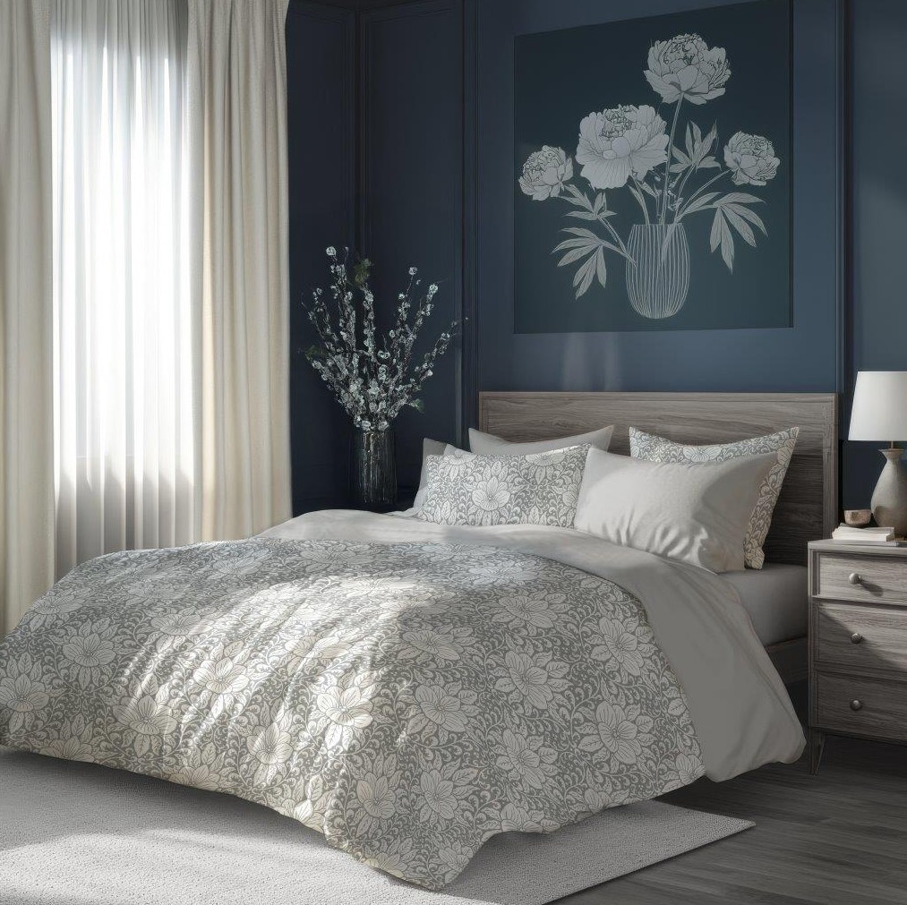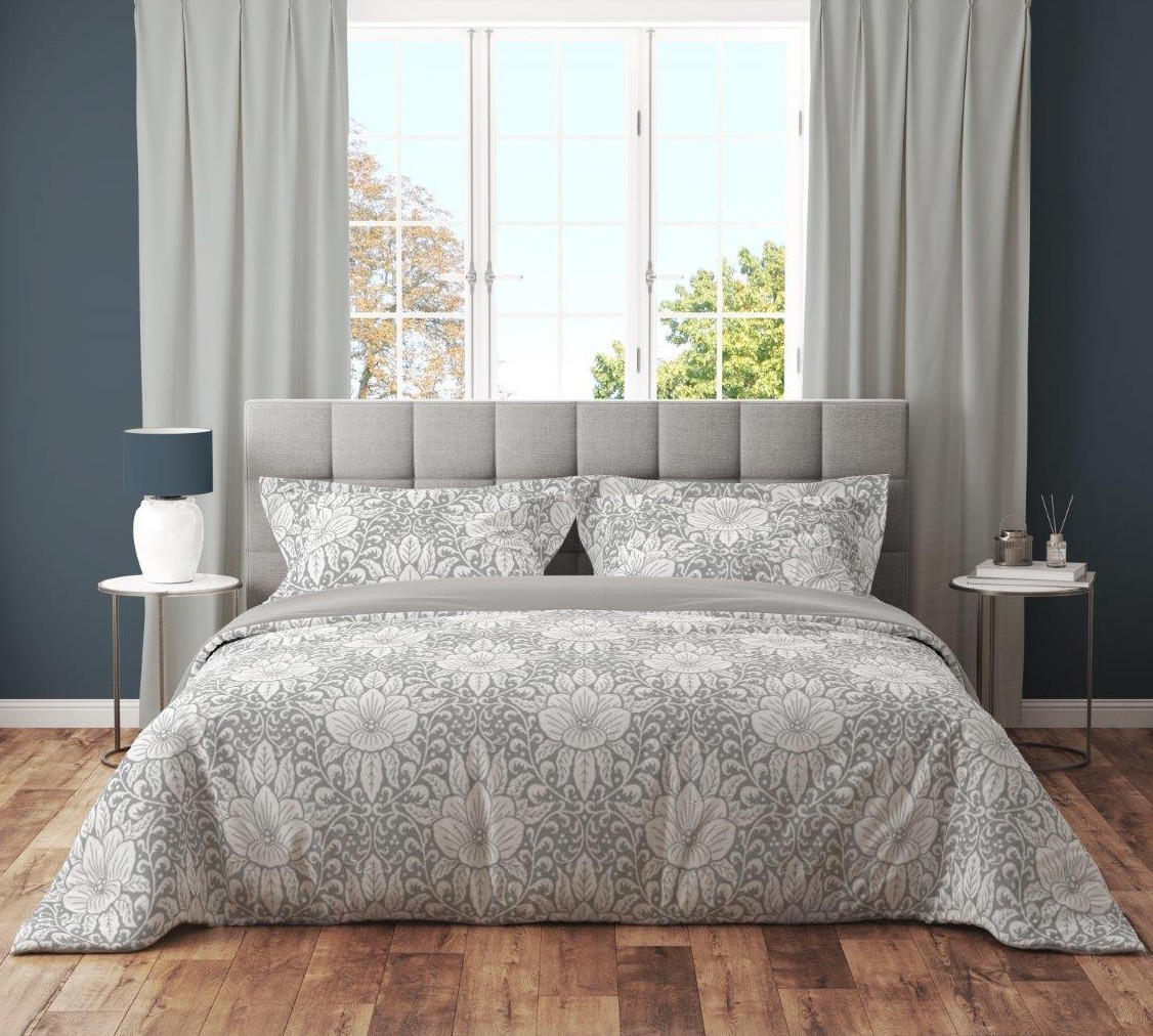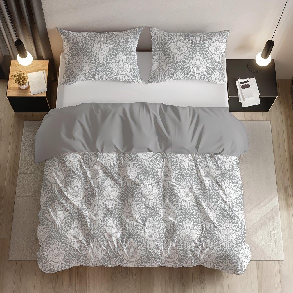 Bavlněné povlečení GUSTO Květy - bílé/šedé - 220x200 cm
