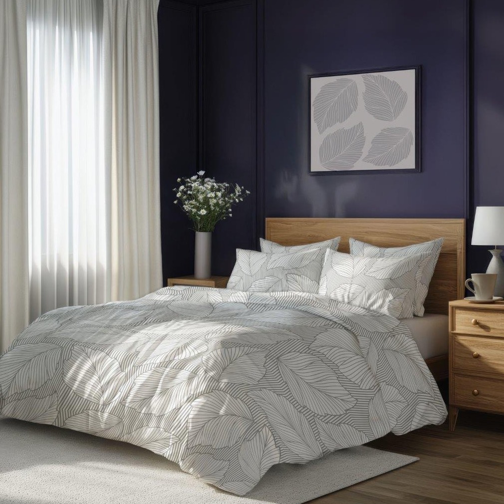 Bavlněné povlečení GUSTO Listy - šedé/bílé - 160x200 cm