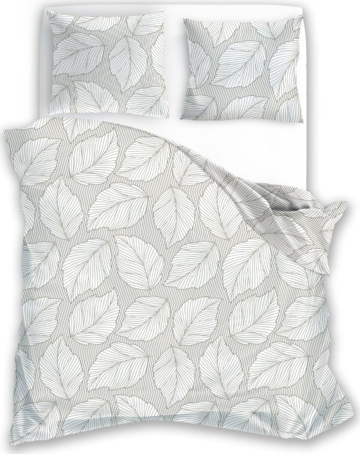 Bavlněné povlečení GUSTO Listy - šedé/bílé - 220x200 cm