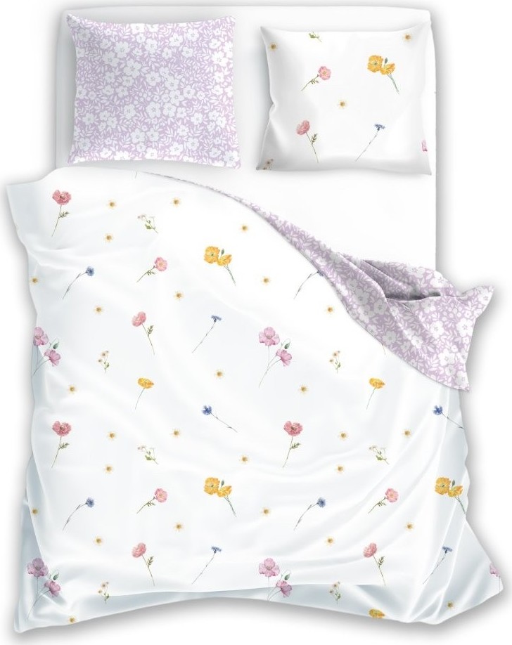Bavlněné povlečení GUSTO Luční kvítí - bílé/fialové - 220x200 cm