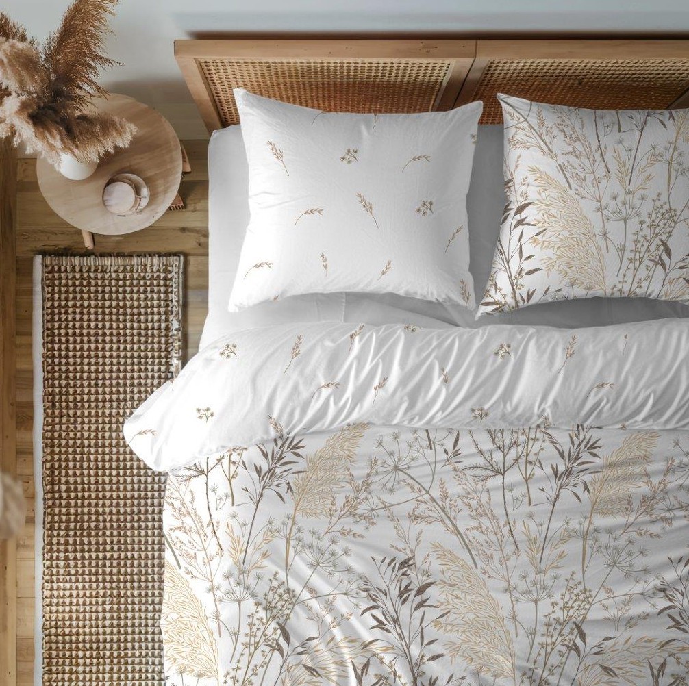 Bavlněné povlečení GUSTO Traviny - bílé - 160x200 cm